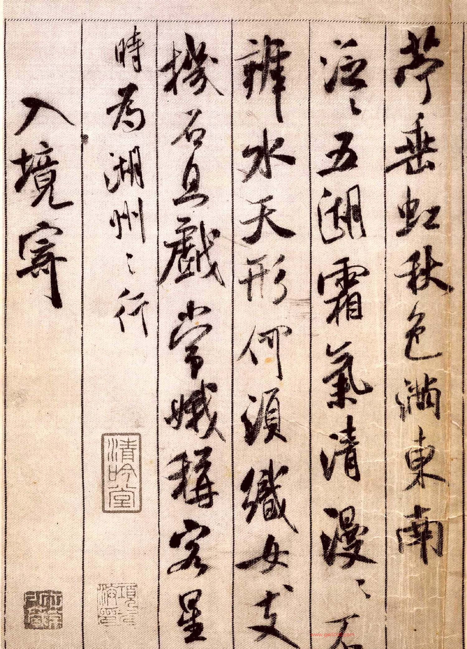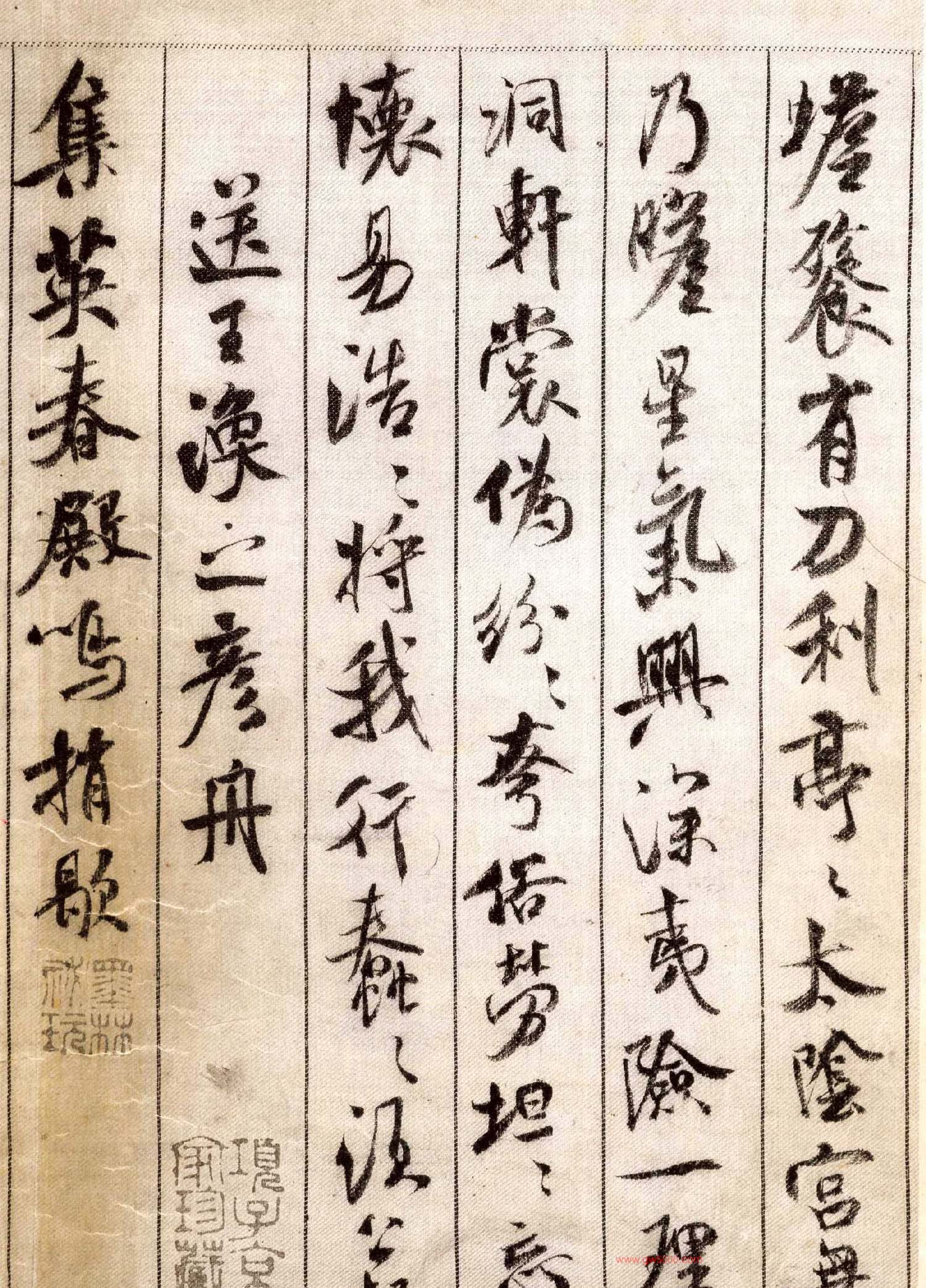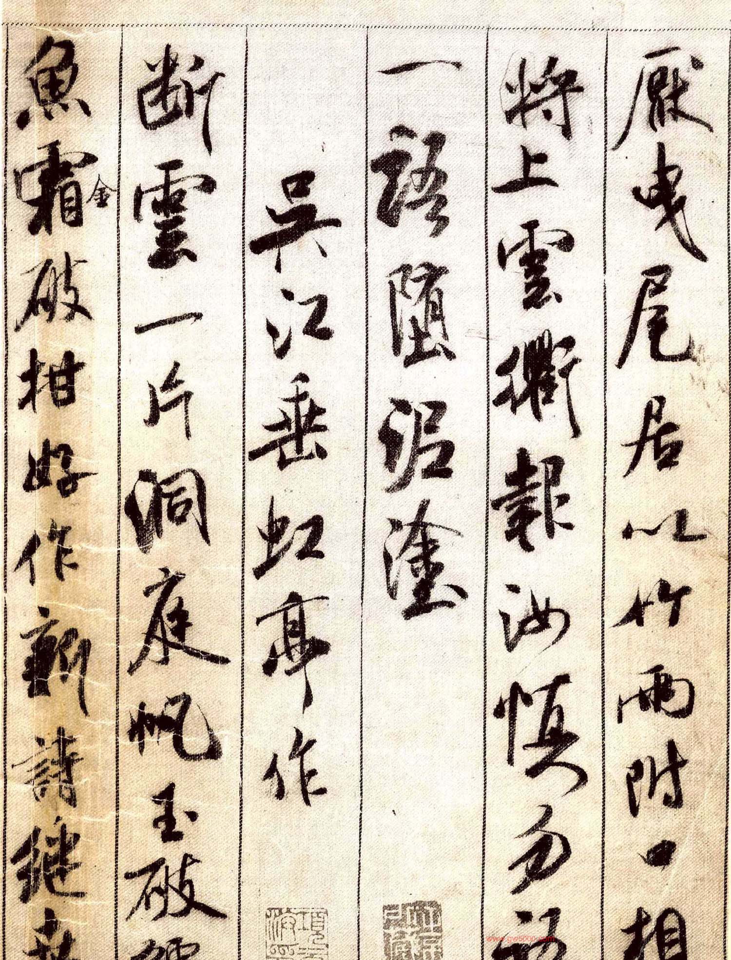 《蜀素帖》明代归项元汴、董其昌、吴廷等著名收藏家珍藏,清代落入高士奇、王鸿绪、傅恒之手,后入清内府,现存台湾故宫博物院。