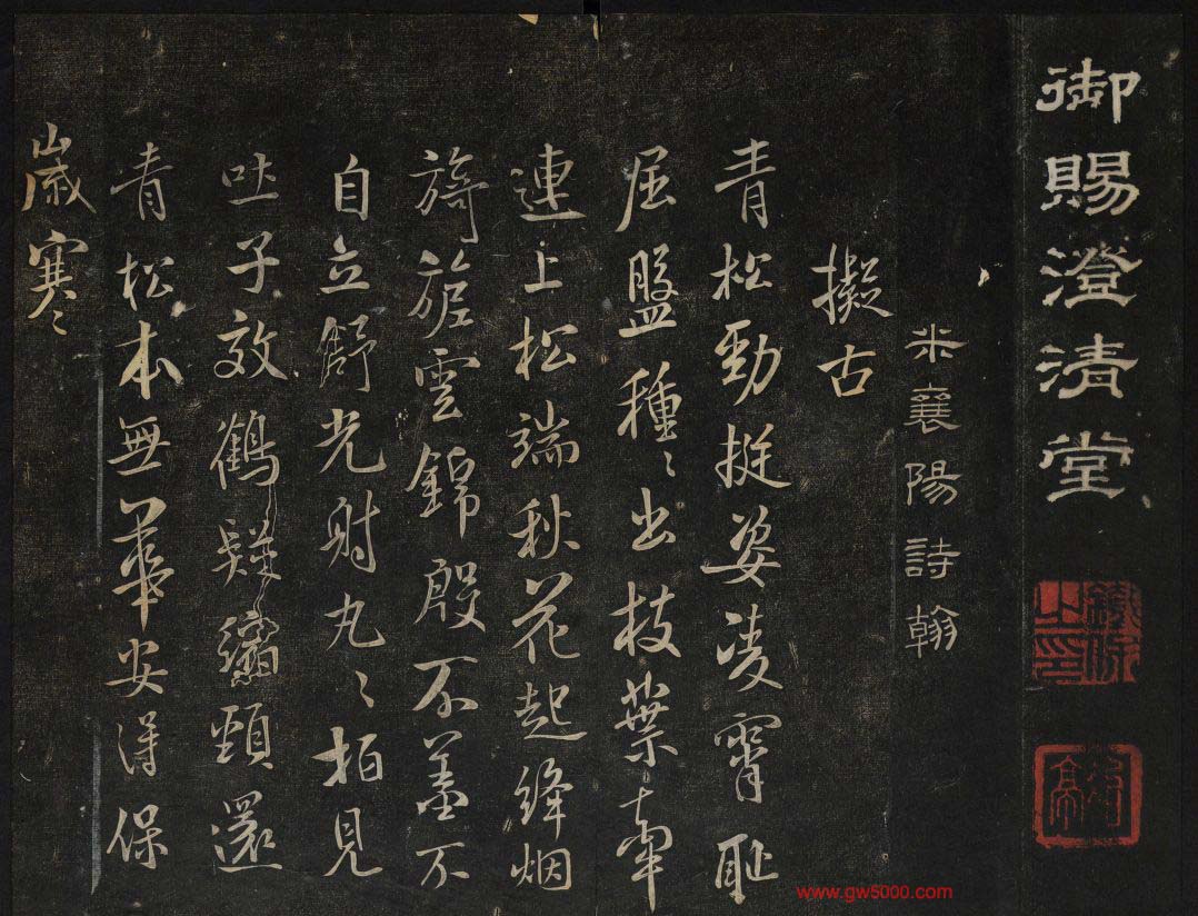 米芾法帖欣赏 御赐澄清堂第一册,澄清堂帖为宋刻汇帖。帖石早佚,拓本流传极少,继善堂珍藏,米襄阳书法诗翰图片40张。