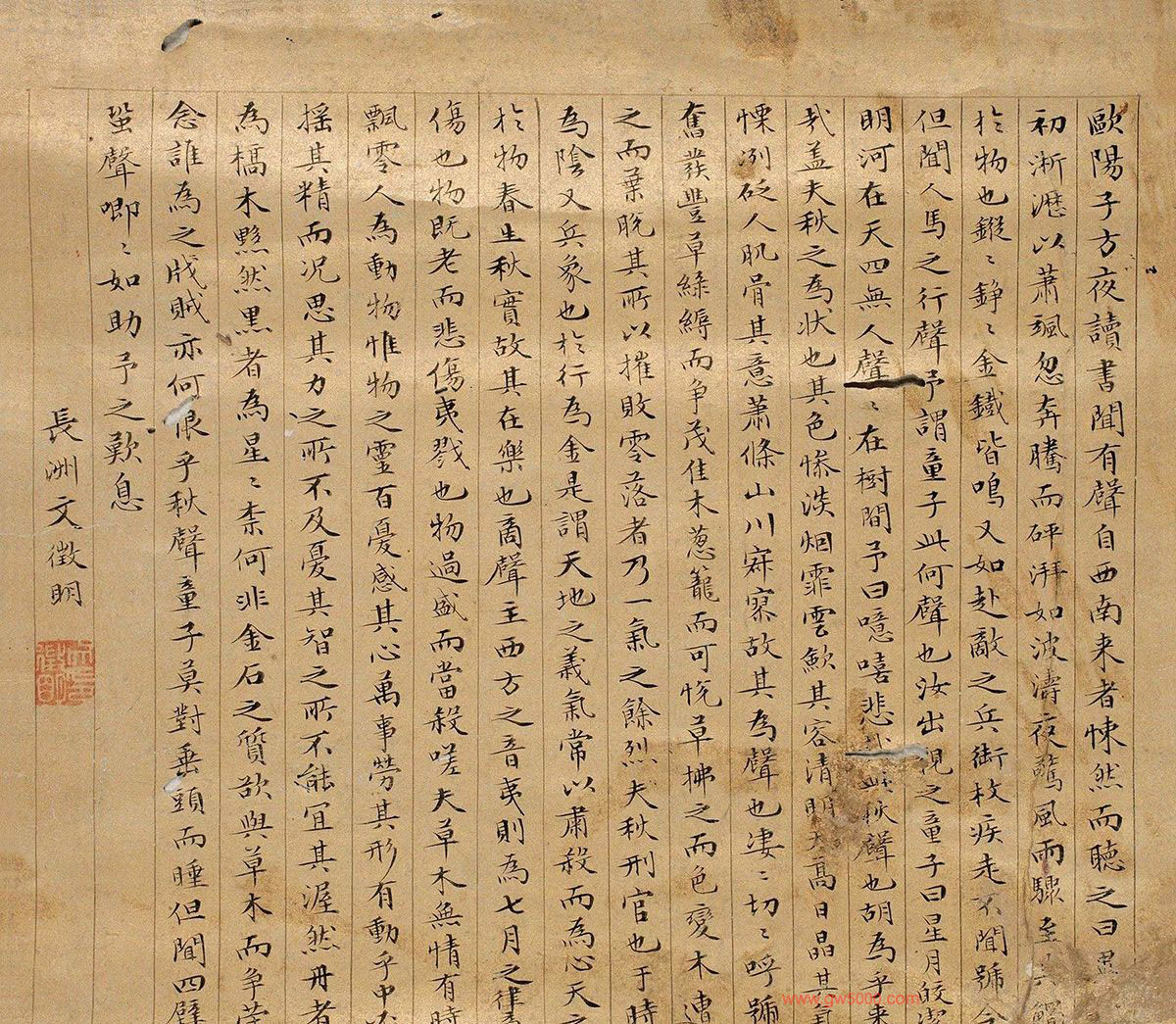文徵明(款)小楷《秋声赋》,28×28cm,来源:2012嘉德拍卖会。