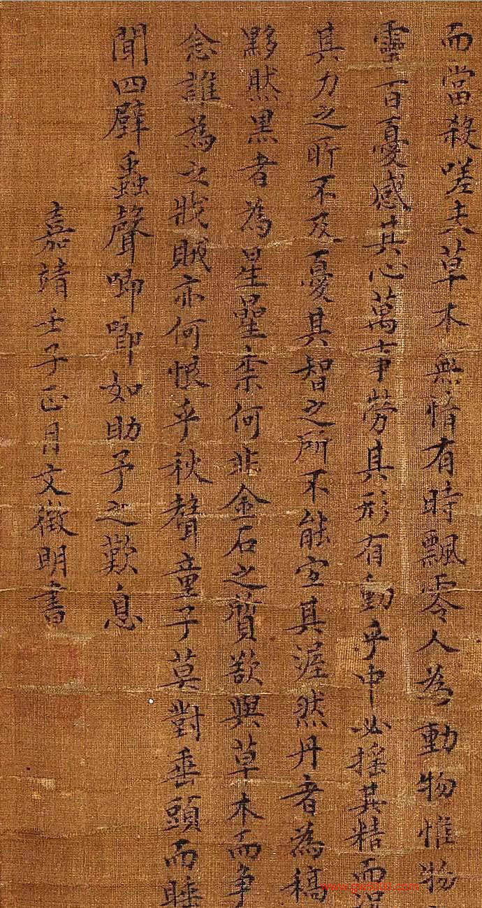 款识:嘉靖壬子(1552年)正月,文徵明书。