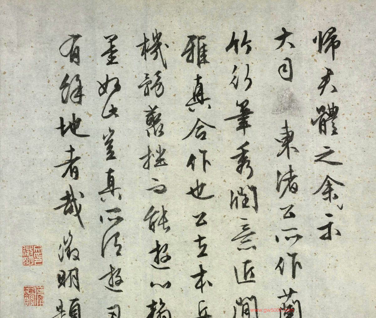 释文:归君体之示余,大司□东渚公所作兰竹,行笔秀润,意匠闲雅,真合作也。公在本兵,机务藂挫,而能游心翰墨如此,岂真所谓游刃有余地者哉?徵明题。