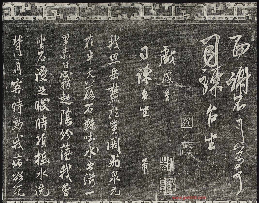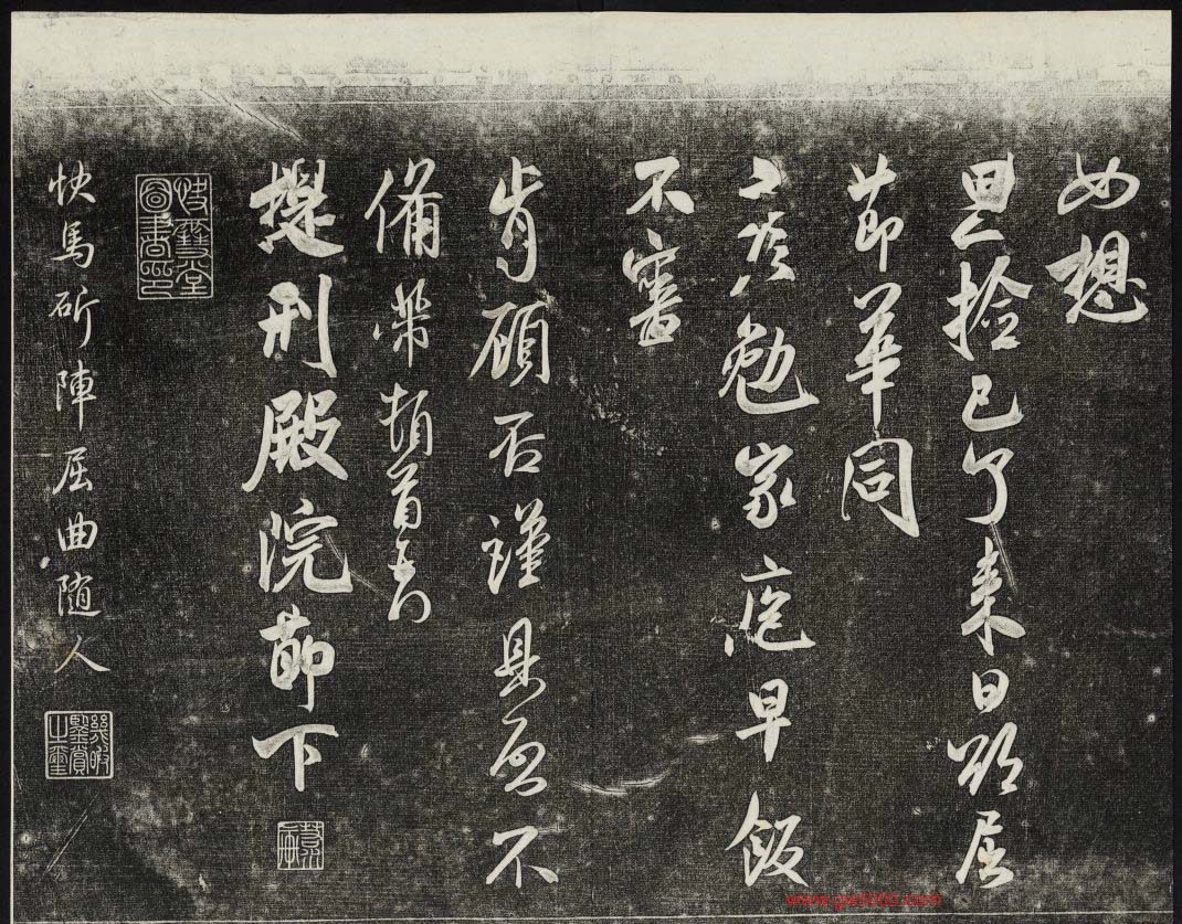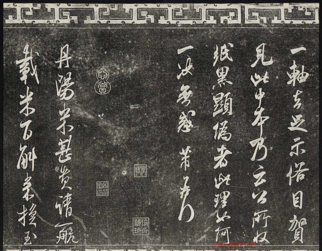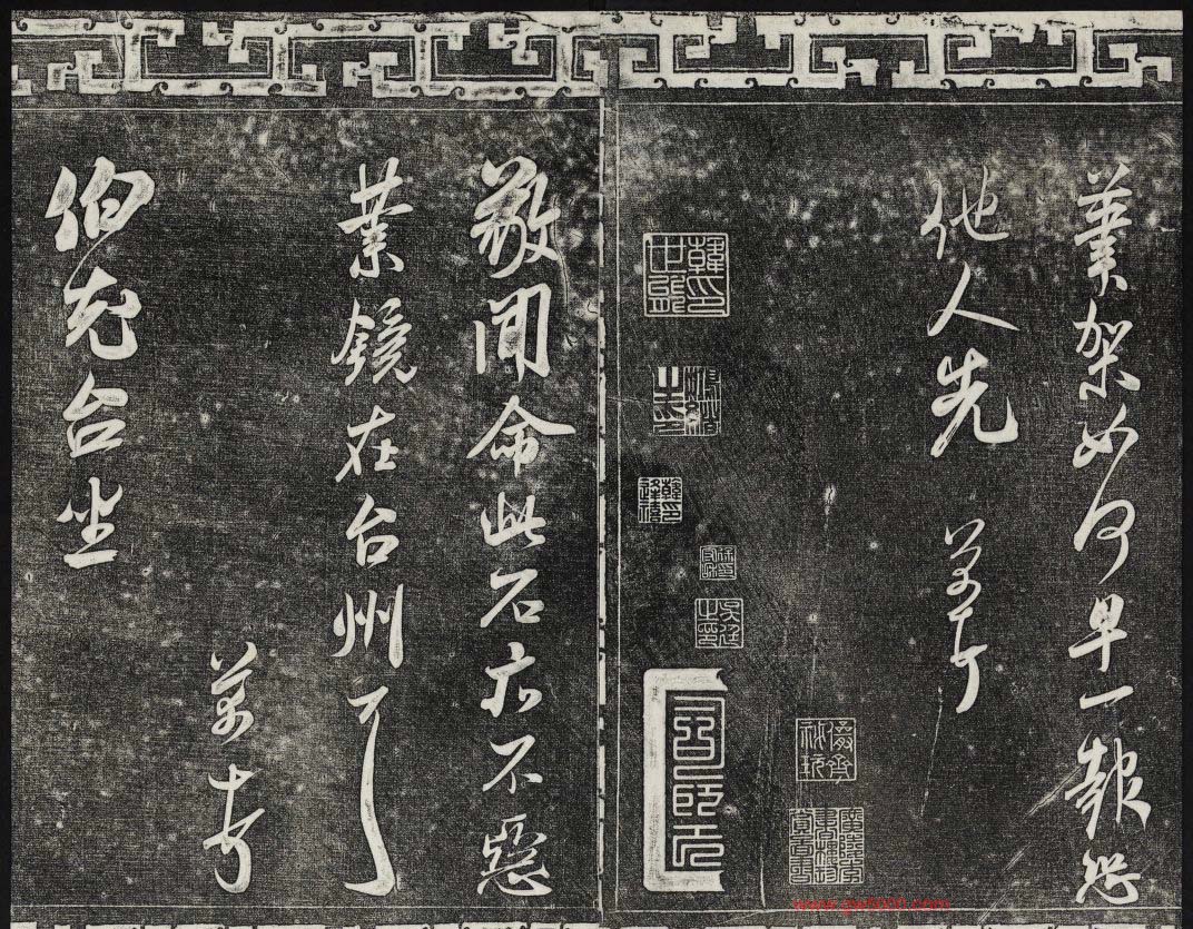 御刻三希堂石渠宝笈法帖第十五册米芾法帖,乾隆15年(1750)刻石,原石现在北京北海公园。宋米芾书法碑帖拓片36张。