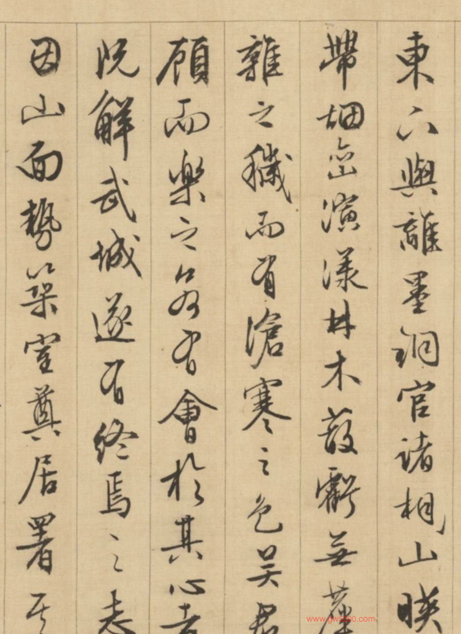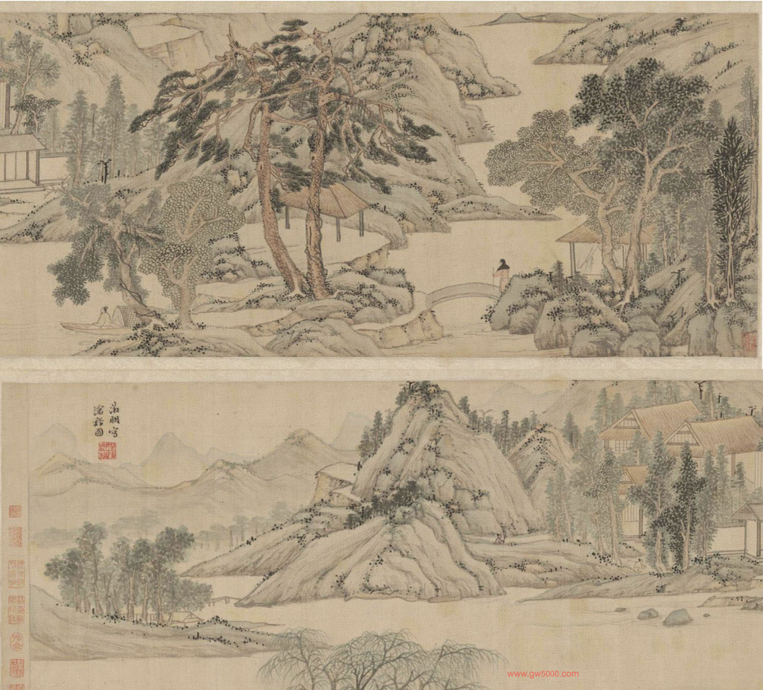 文徵明七十五岁书画《沧溪图卷》,绢本设色,31.7×139.8厘米,故宫博物院藏。