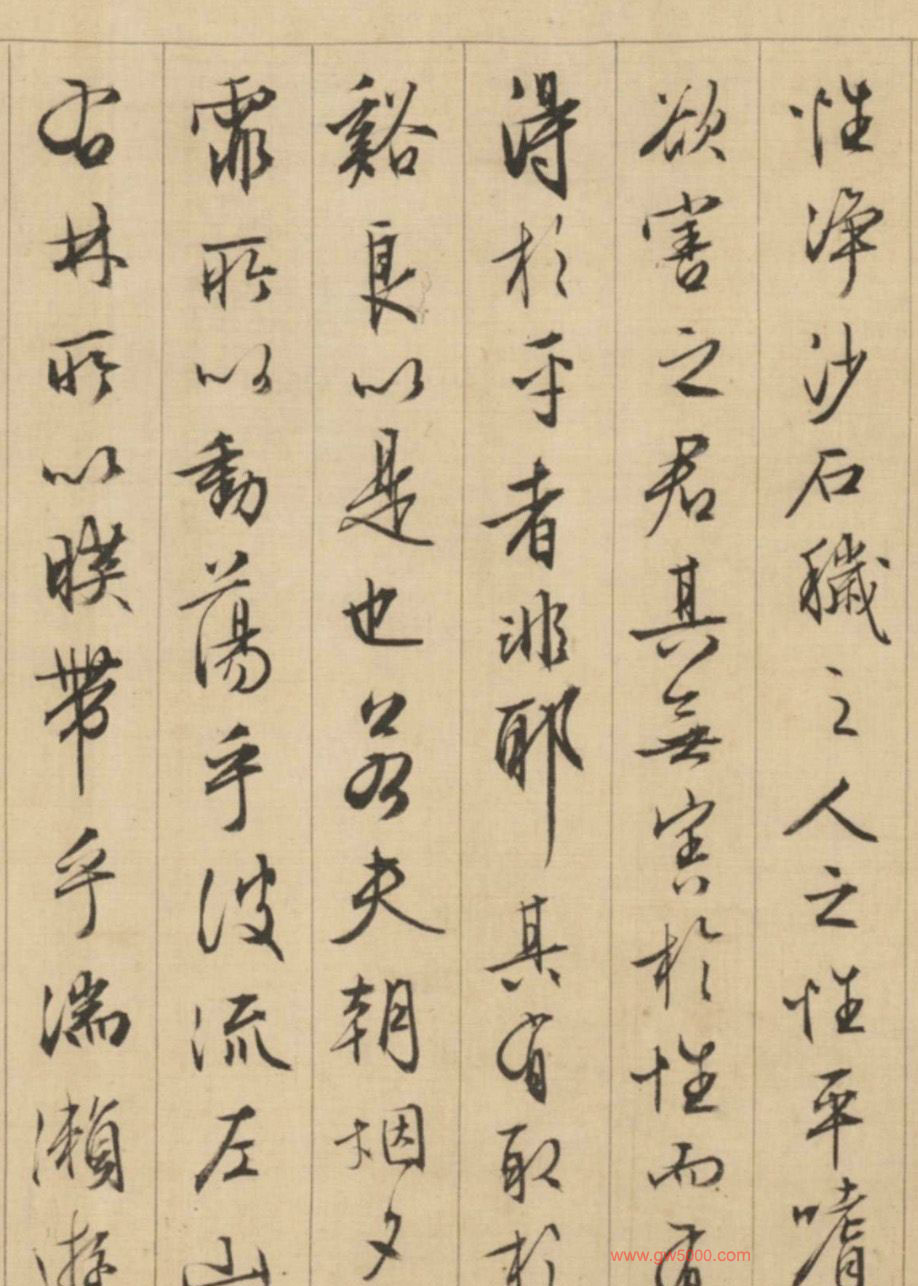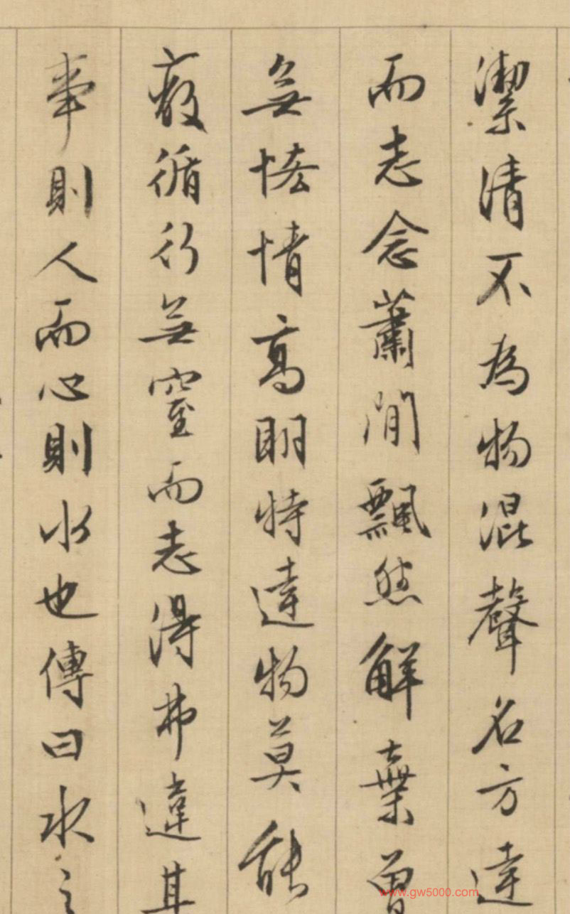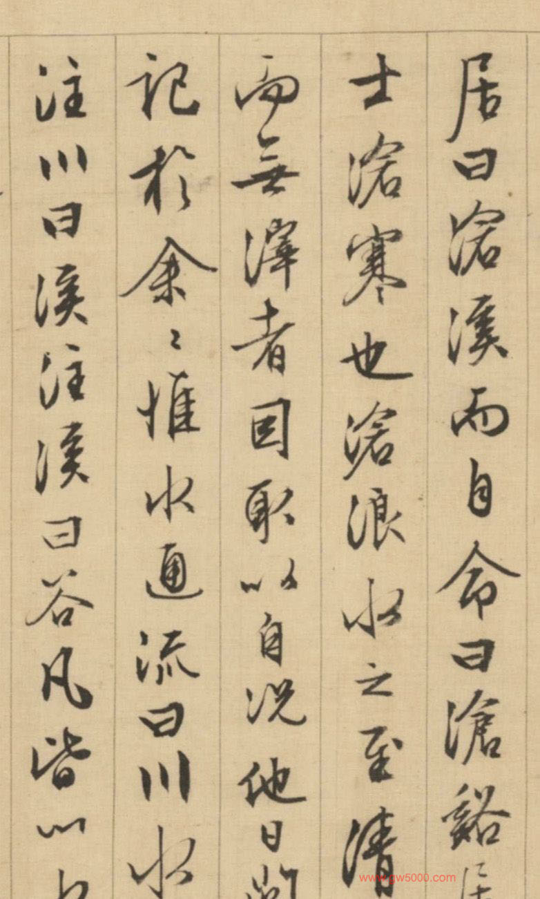 文征明为宜兴吴俦作《沧谿图》,画面层山叠翠,青松烟柳,杂树繁茂,小桥流水,屋舍茅棚,作品布局精巧,笔意纵逸苍劲老辣,整幅画面清润雅丽,沉静而明洁。