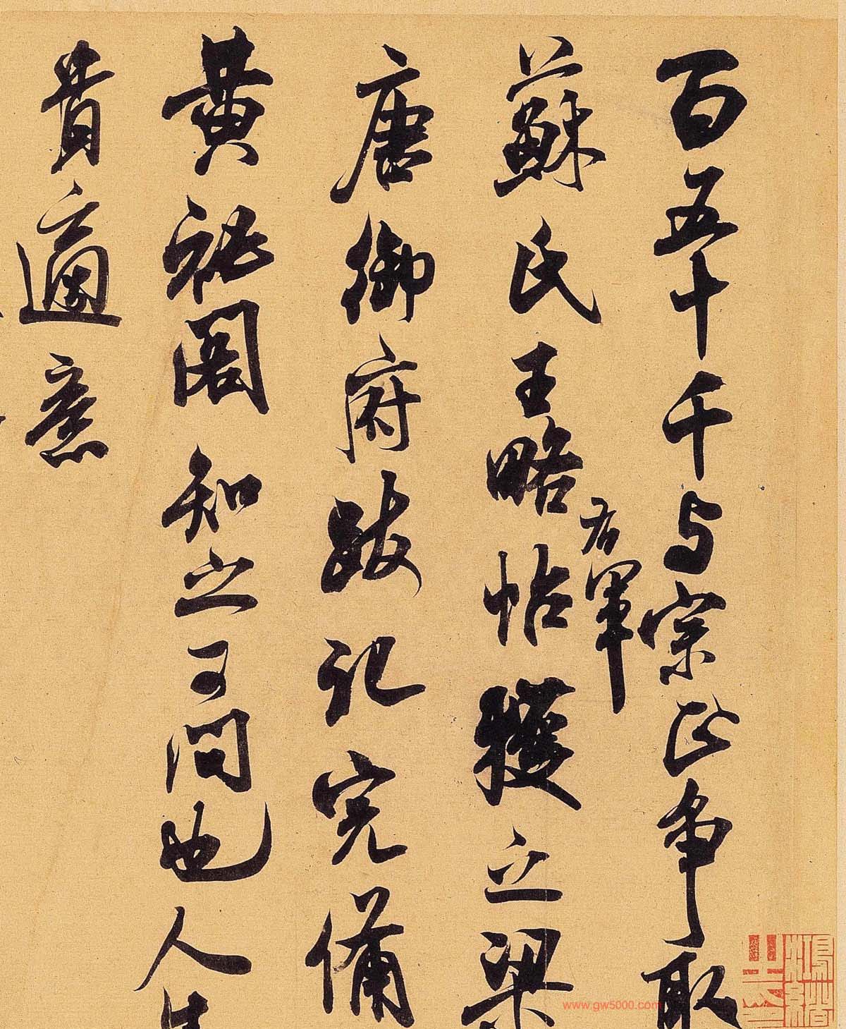 百五十千与宗正争取苏氏《王略帖》(旁注:右军),获之。梁、唐御府跋记完备。黄秘阁知之,可问也。人生贵适意,吾友觑一玉格,十五年不入手,一旦光照宇宙,巍峨至前,去一百碎故纸,知他真伪,且各足所好而已,幸图之!米君若一旦先朝露,吾儿吝,万金不肯出。芾顿首。