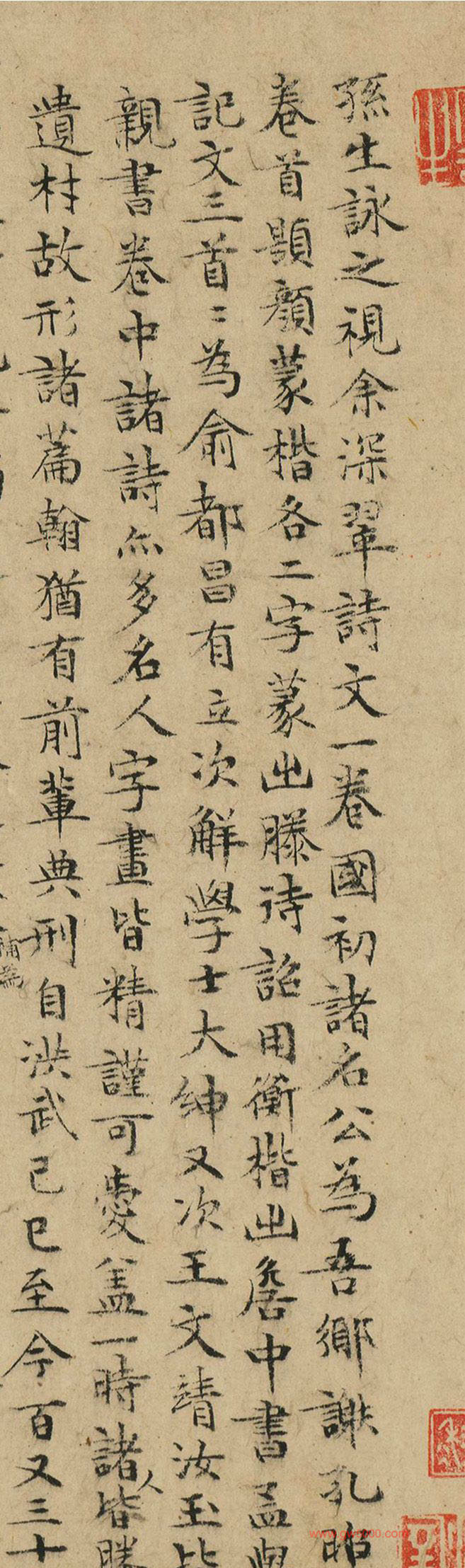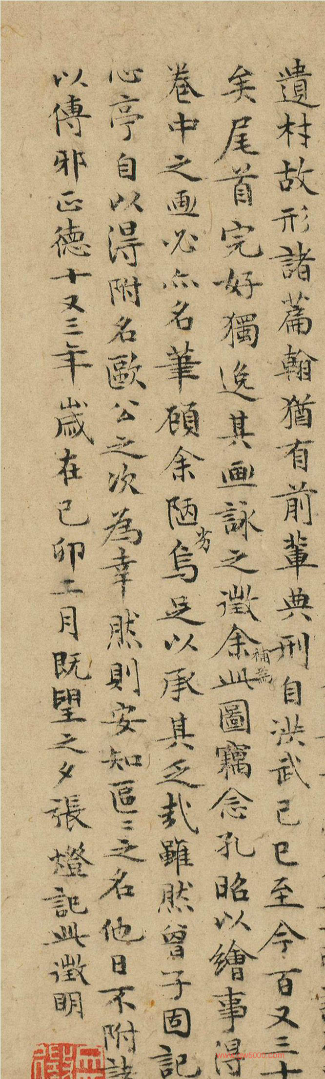 文徵明50岁小楷题跋,来源:文徵明深翠轩图卷(疑本),故宫博物院藏。