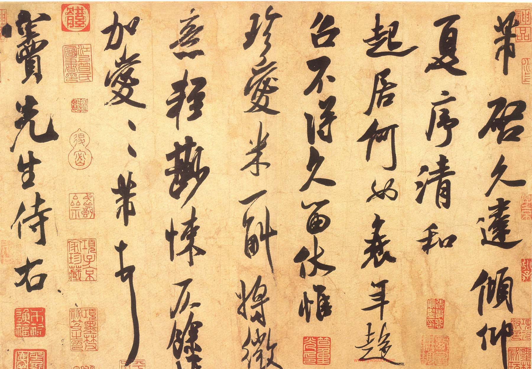 此帖曾经项子京、笪重光等人收藏。“清和帖”是米芾的书法精品之一,写的潇洒超逸,不激不励,用笔比较含蓄,与其它帖比较,温和了许多,但笔划的轻重时有对比,字的造型欹侧变化,又使此帖平添了几分俊迈之气。