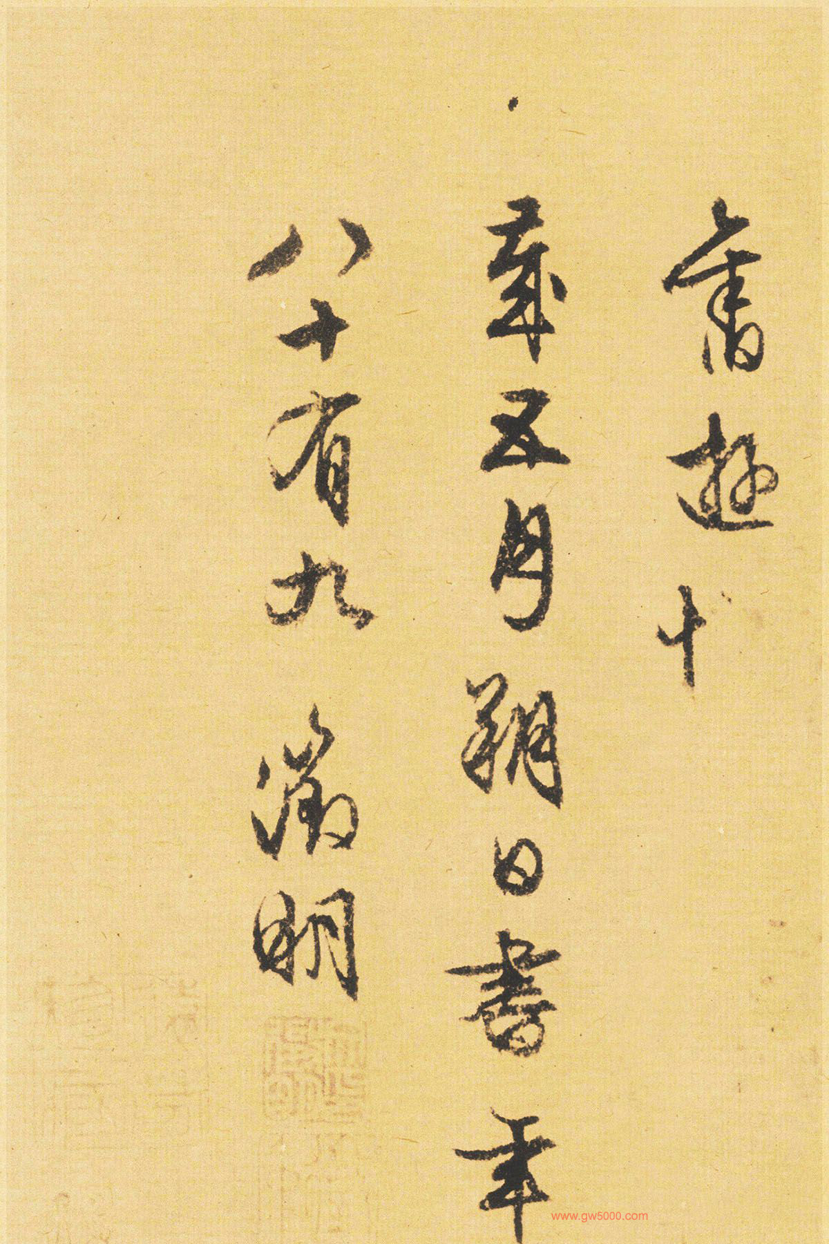 款识:“右诗,嘉靖乙酉春官京师时作,去今戊午三十有四(下缺),旧游(下缺),岁五月朔日书,年八十有九,徵明。