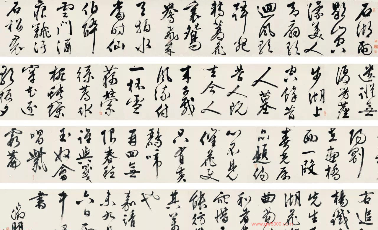 文徵明大字行书手卷《追和杨铁崖石湖花游曲》,32.5×868cm,1547年作,来源:保利拍卖2020秋拍。