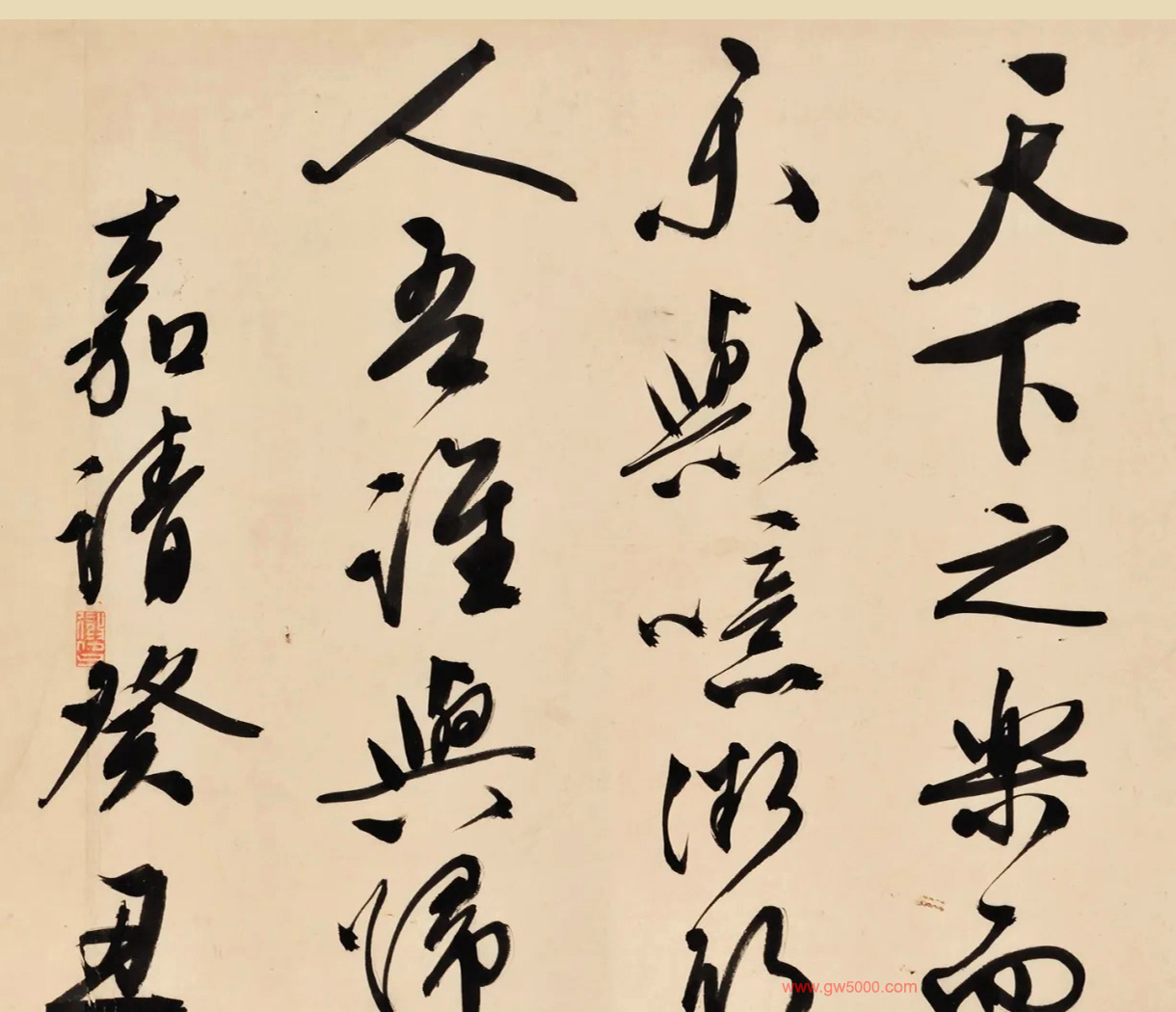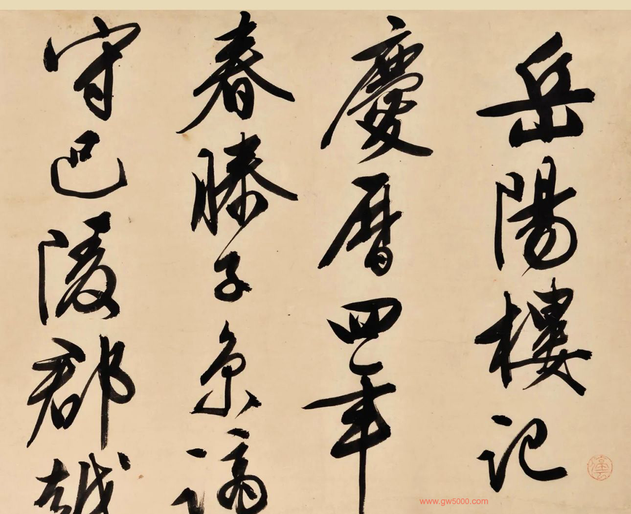 本件《行书岳阳楼记》,每行约五字,通透舒朗,运笔轻松、闲适,洒脱婉转,气息连贯畅快,故而神韵完足,堪称杰作。