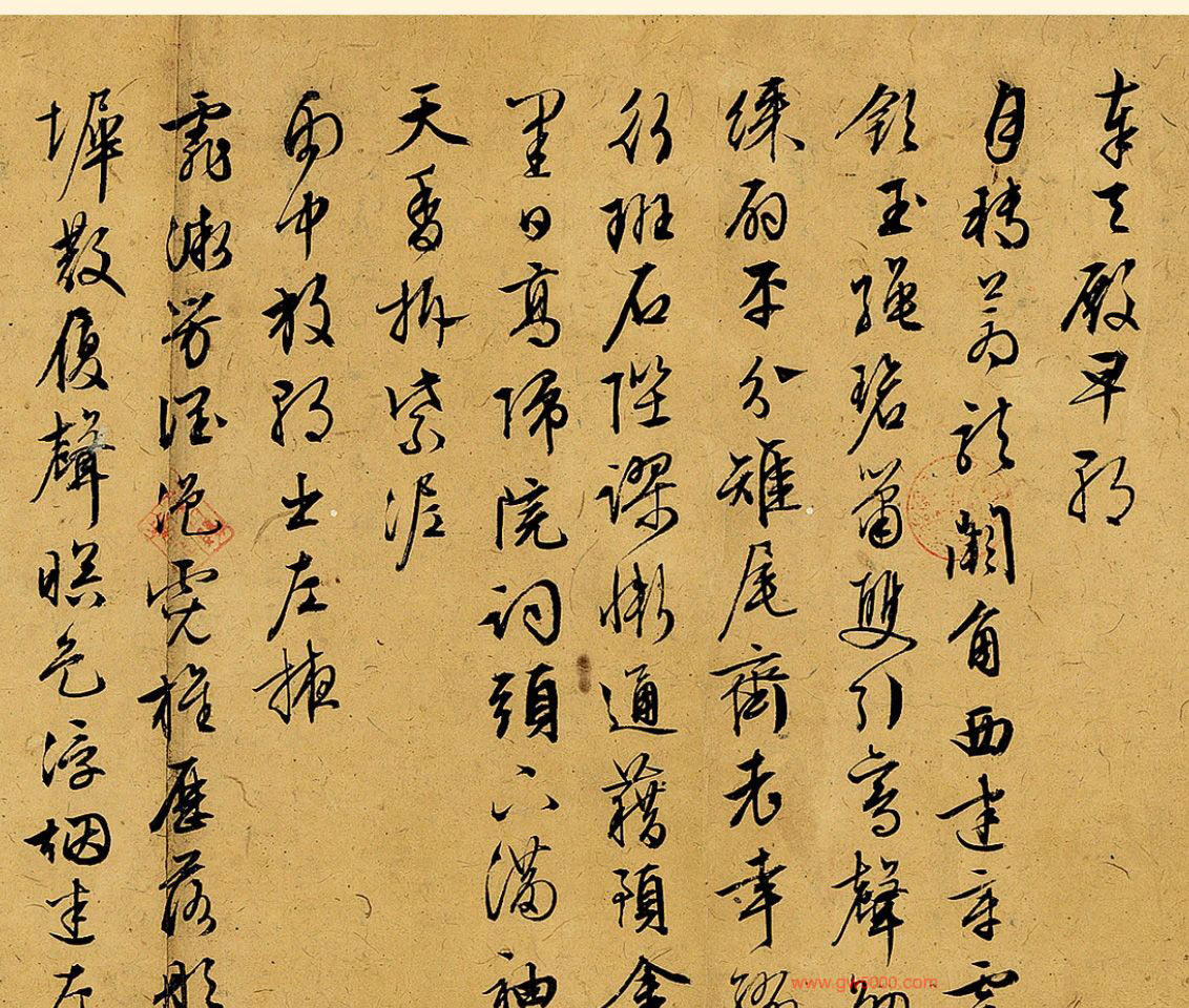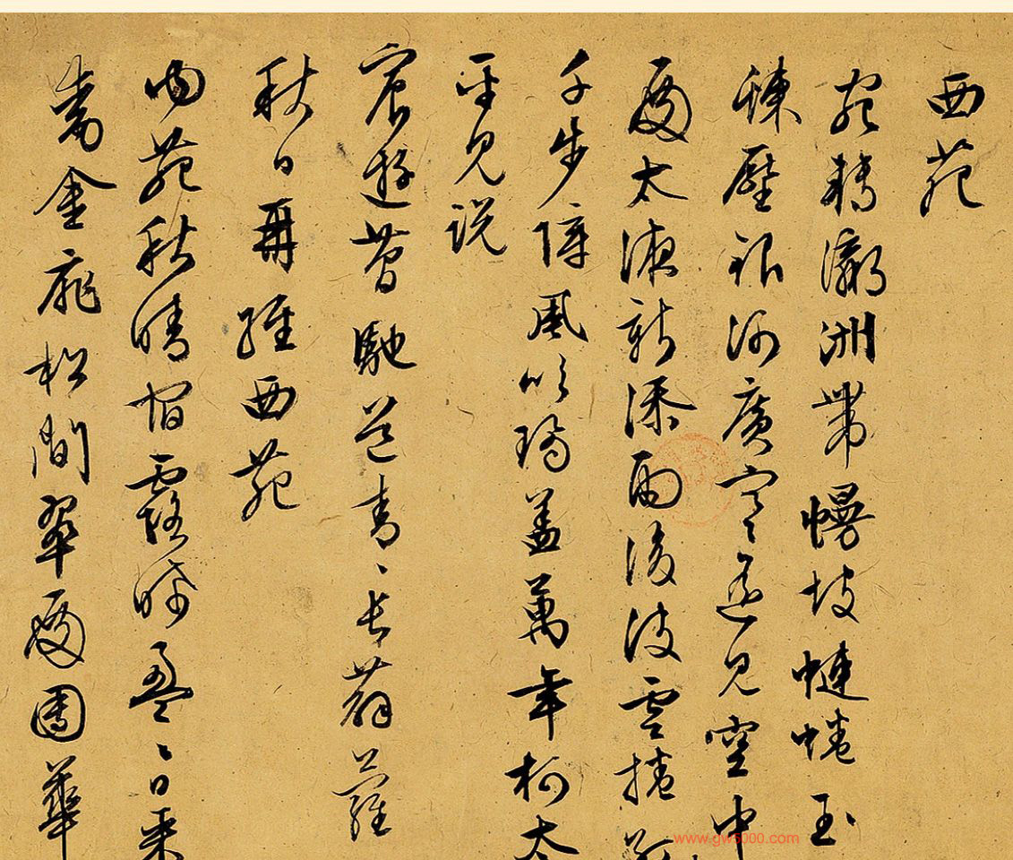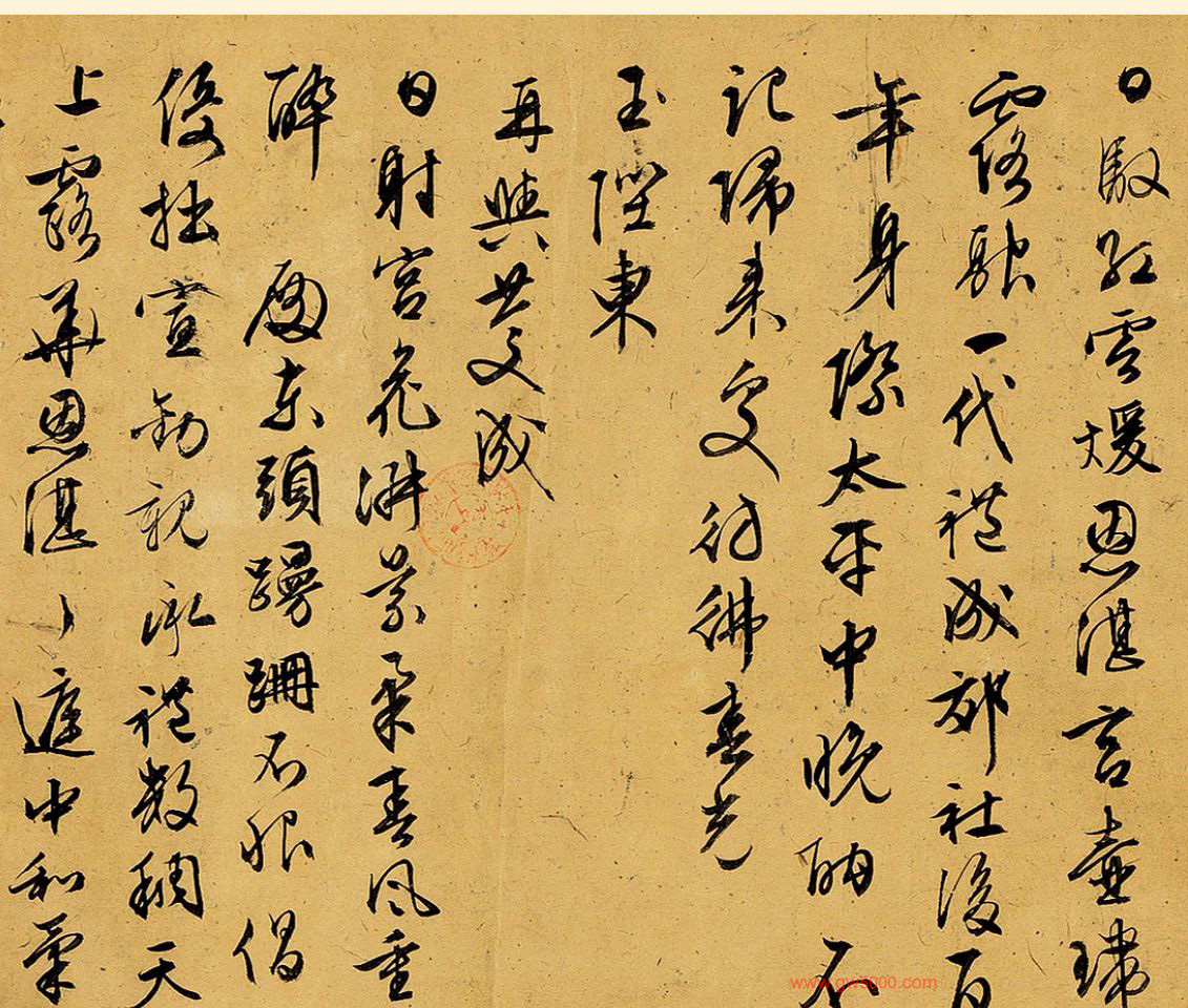 文徵明于嘉靖二年癸未五十四岁时因江苏巡抚李公嗣之荐入京任待诏,虽不能适应官场生活,四年后即辞官返乡,但在京时所作组诗《早朝诗》、《西苑诗》皆有十首以上,且晚年书为手卷者极多,可见不忘皇恩如此。此卷即书此二组并增《还家志喜》及《次韵陈侍卿忆昔》等诗。自称旧作,当是五十九岁返乡以后老年之作。皆行草一气而书,绝无凝滞,尤以中锋敛毫,不作尖利之常态,有人书俱老,不求好而自好的率真之趣。全卷长达五米多,细字密书,首尾一致,毫无懈怠率易之笔,是其晚年佳作无疑。