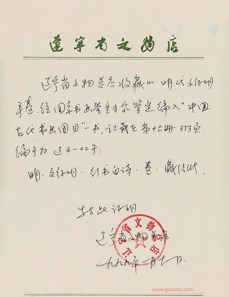 辽宁省文物总店证明书