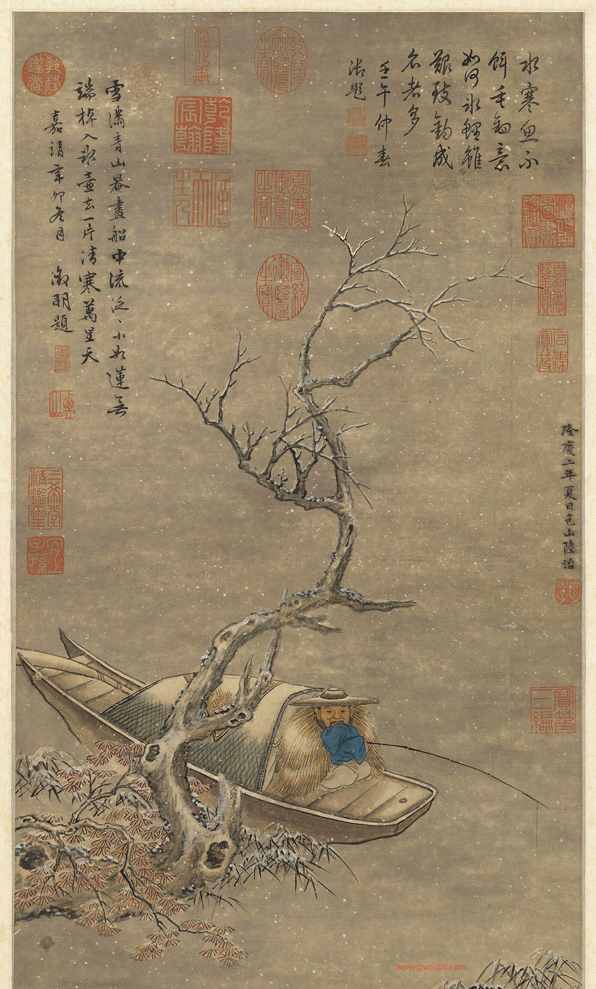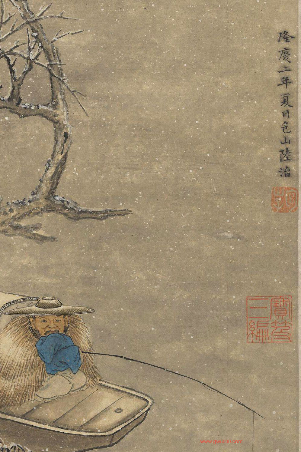 陆治寒江钓艇轴,台北故宫博物院藏。