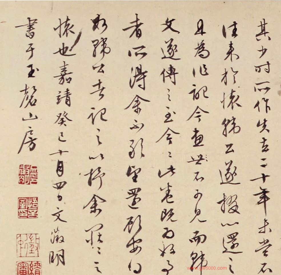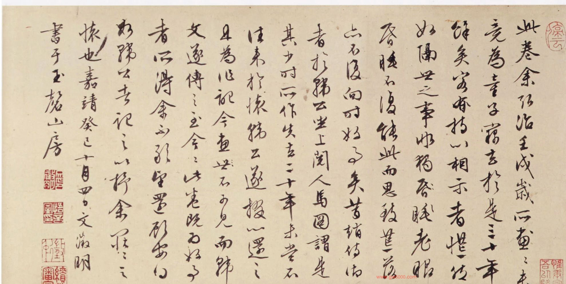 此卷余弘治壬戌岁(1502年)所画......嘉靖癸巳(1533年)十月四日文徵明书于玉磬山房