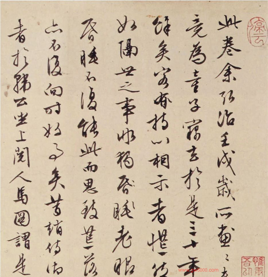 文徵明行书《记三十年前画卷》,来源:文徵明《山水图》卷后自跋。
