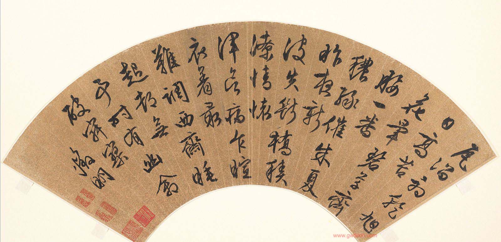 文徵明夏日雨后书诗扇,16.2 x 49.5 cm,大都会艺术博物馆藏。