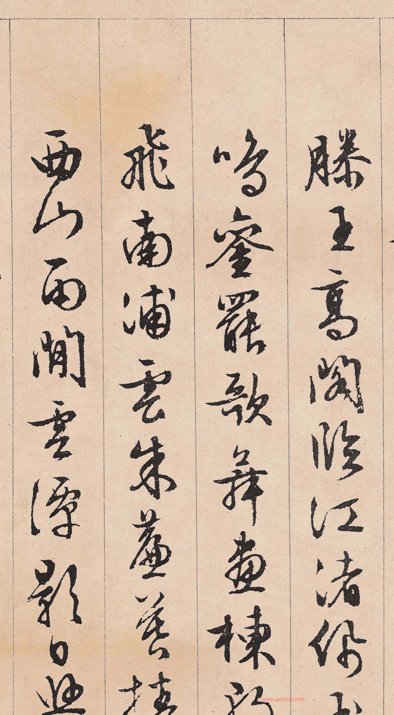 滕王高阁临江渚,佩玉鸣鸾罢歌舞。画栋朝飞南浦云,朱帘暮卷西山雨。闲云潭影日悠悠,物换星移几度秋。阁中帝子今何在?槛外长江空自流。徵明。