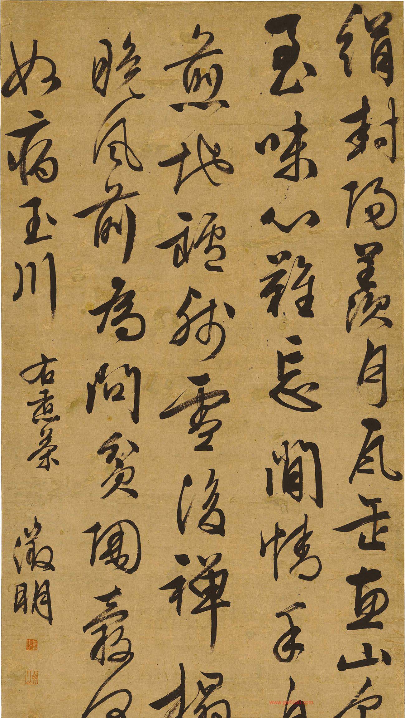 释文:绢封阳羡月,瓦缶惠山泉。至味心难忘,闲情手自煎。地垆残雪后,禅榻晚风前。为问贫陶谷,何如病玉川。右煮茶 徵明