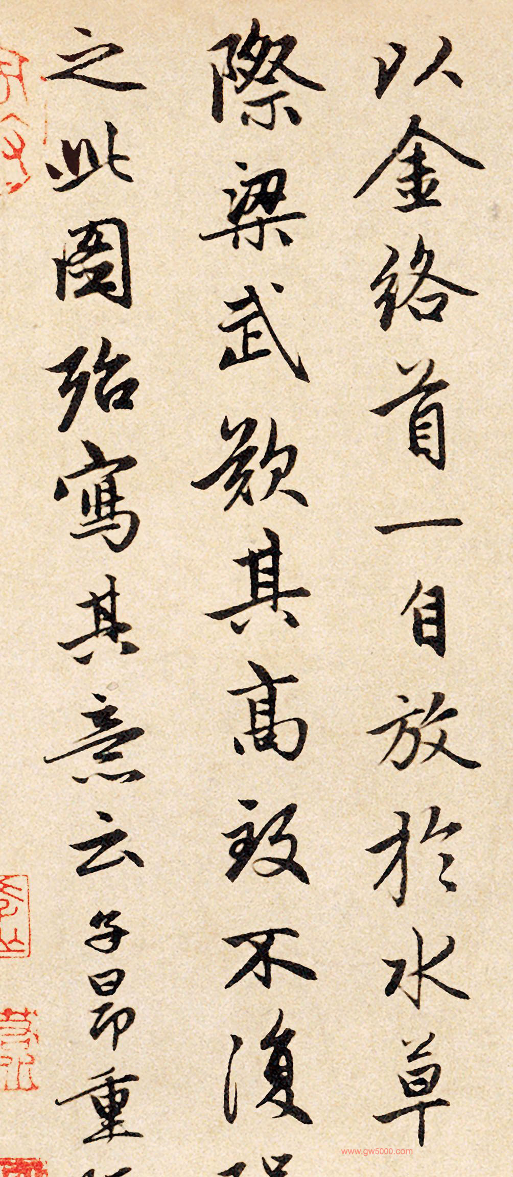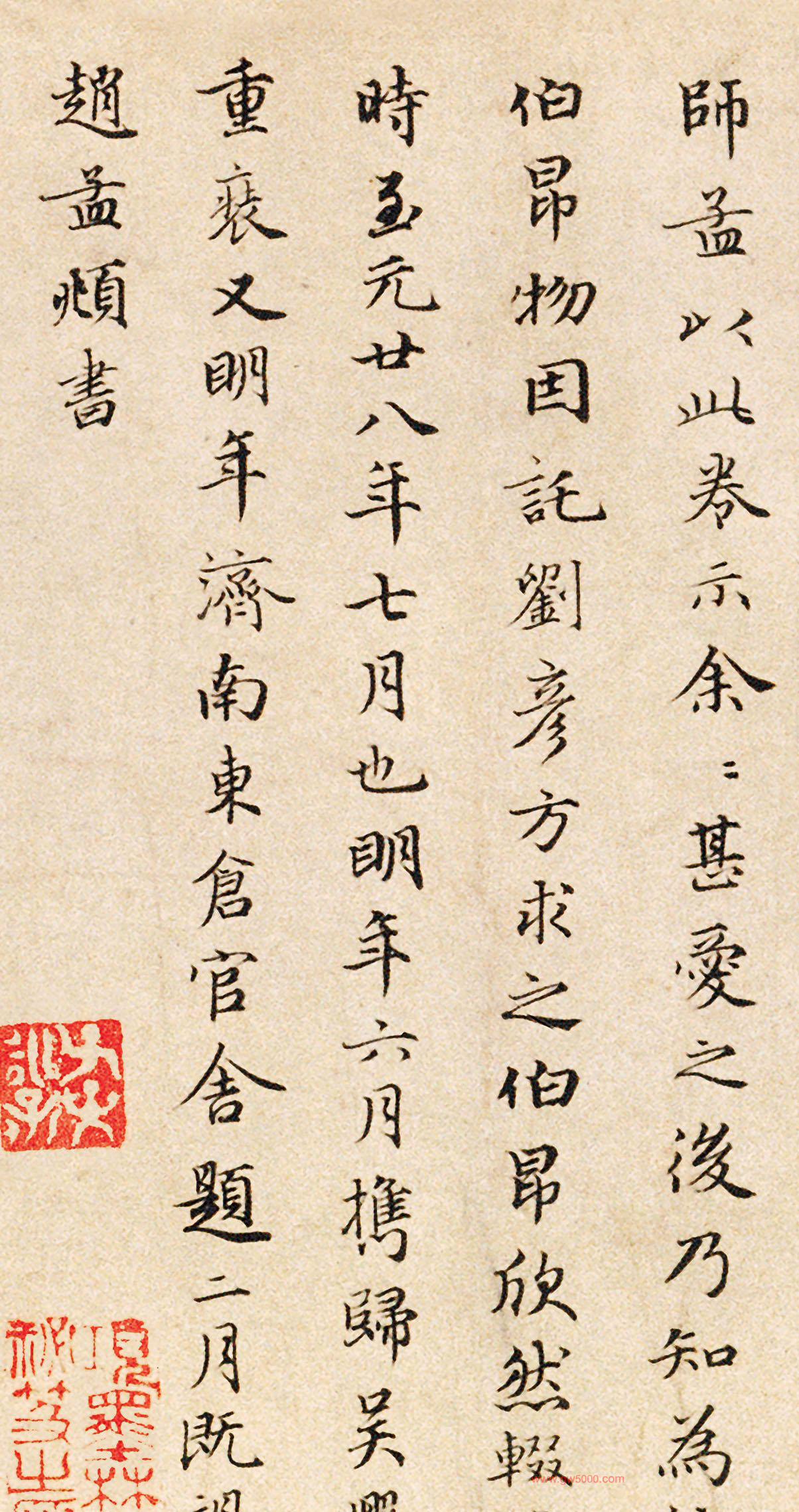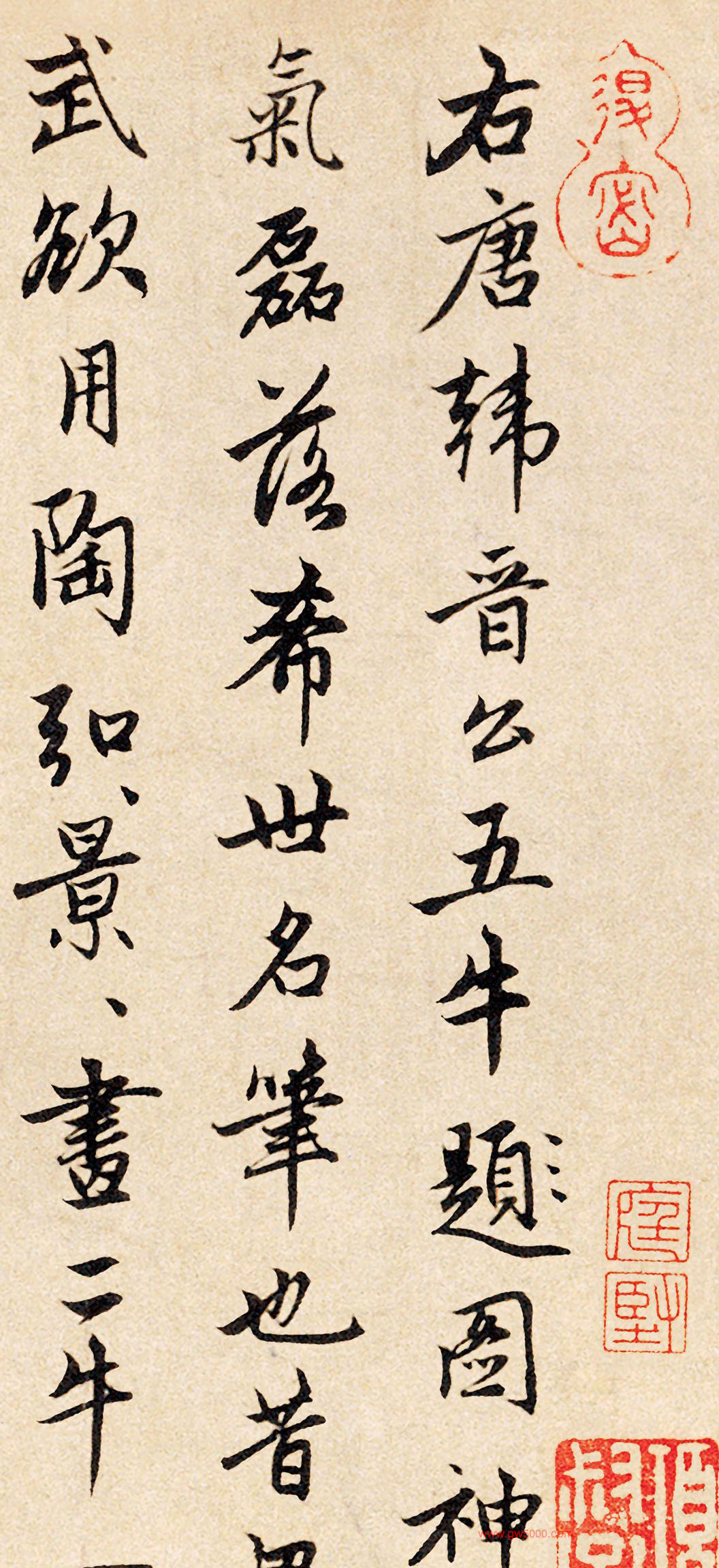 元代赵孟頫行书三次题跋《韩滉五牛图卷》,北京故宫博物院藏。