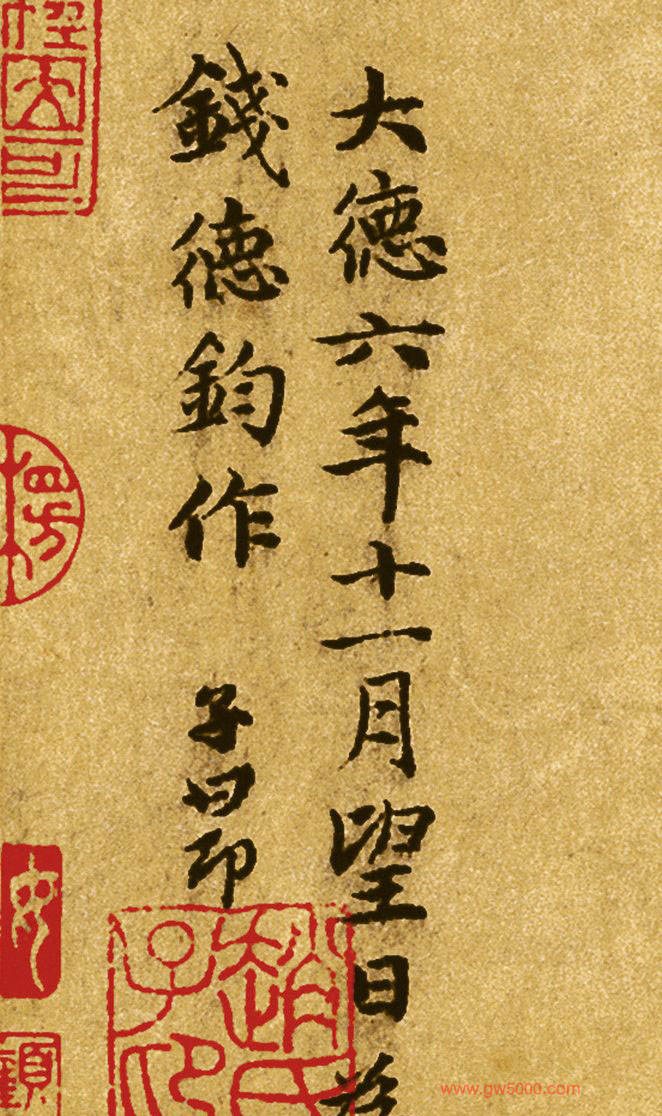 本幅款识:"大德六年十一月望日,为钱德钧作。子昂。