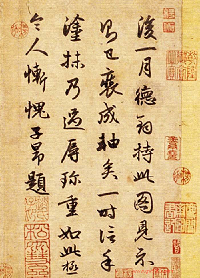 尾纸赵孟頫书法题跋:后一月,德钧持此图见示,则已装成轴矣。一时信手涂抹,乃过辱珍重如此,极令人惭愧。子昂题。
