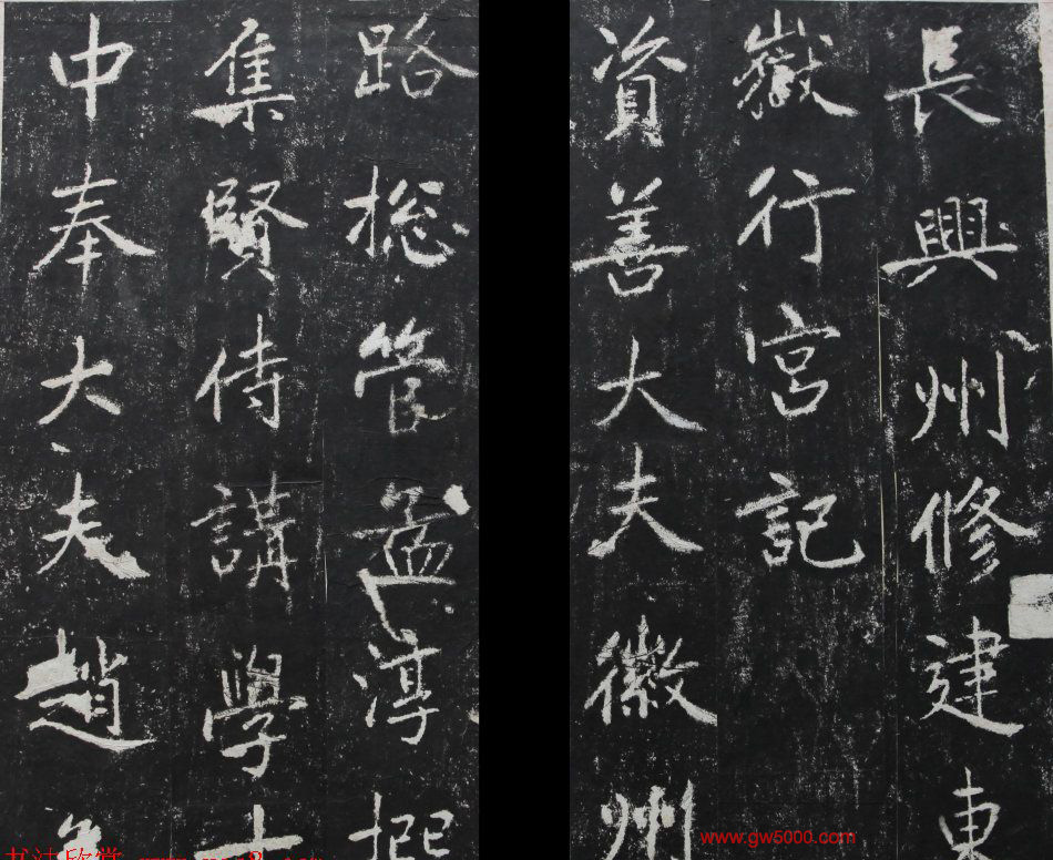 《行宫记》拓片保存不完整,已存残缺,但大部分内容还存在,共有十章。长兴州,元置,为浙江长兴县地名。赵孟頫博学多才,元代著名画家,楷书的四大家之一,孟淳为资善徽州陆总管。据考证,拓片清末民国初就已保存在朱氏家族中。