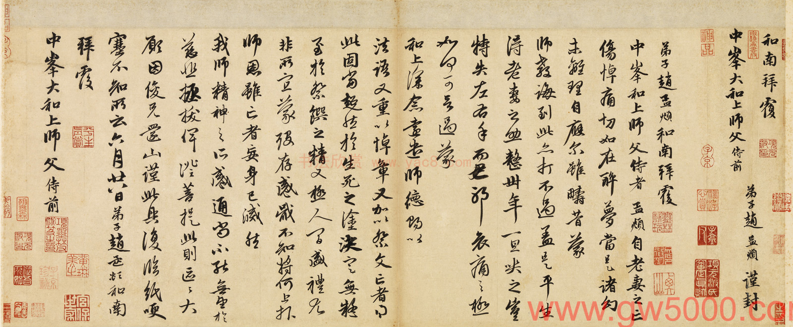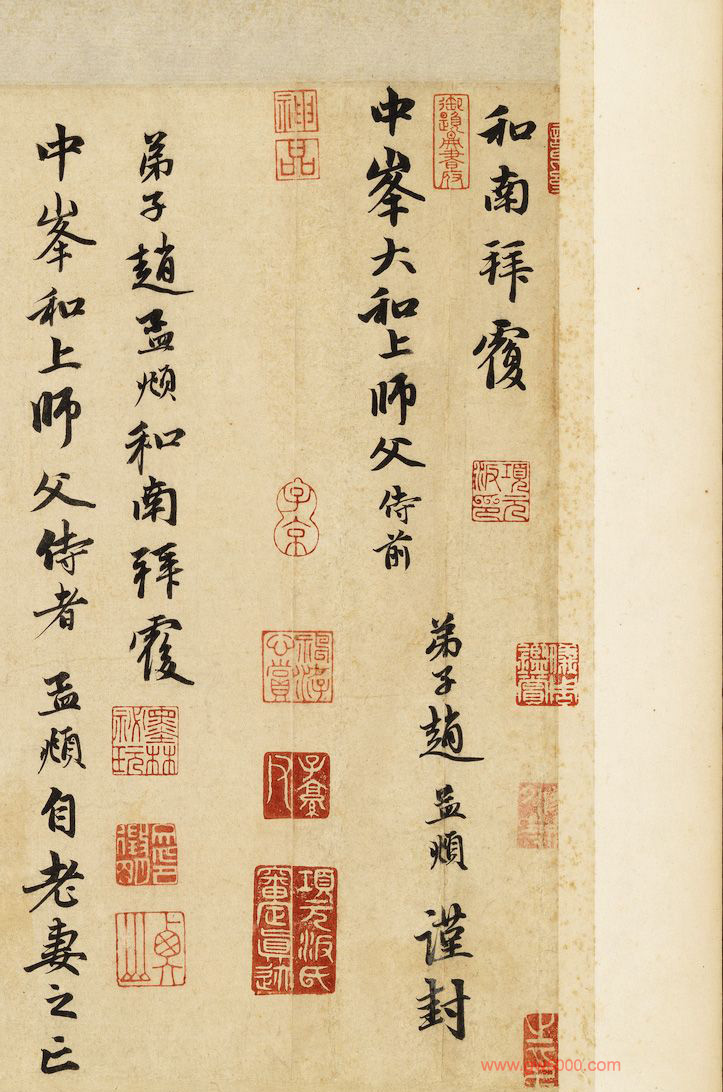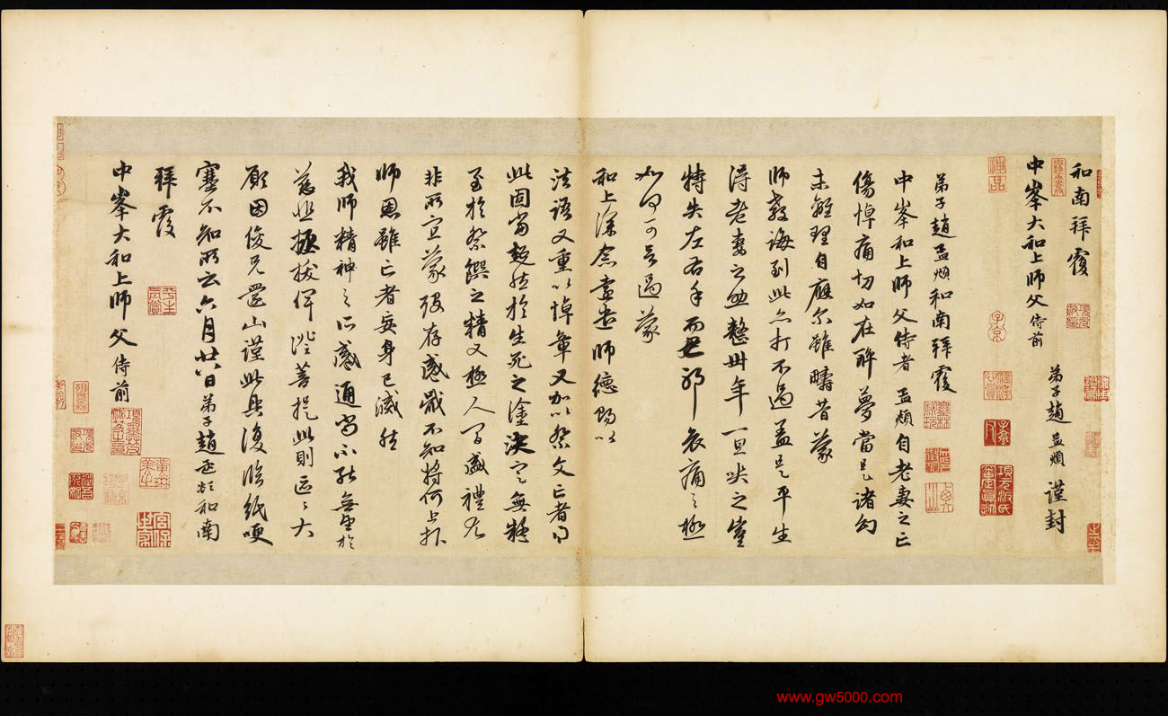 元趙孟頫趙氏一門法書冊--趙孟頫致中峰和尚尺牘,尺寸: 43.6x77.8厘米,台北故宫博物院藏。