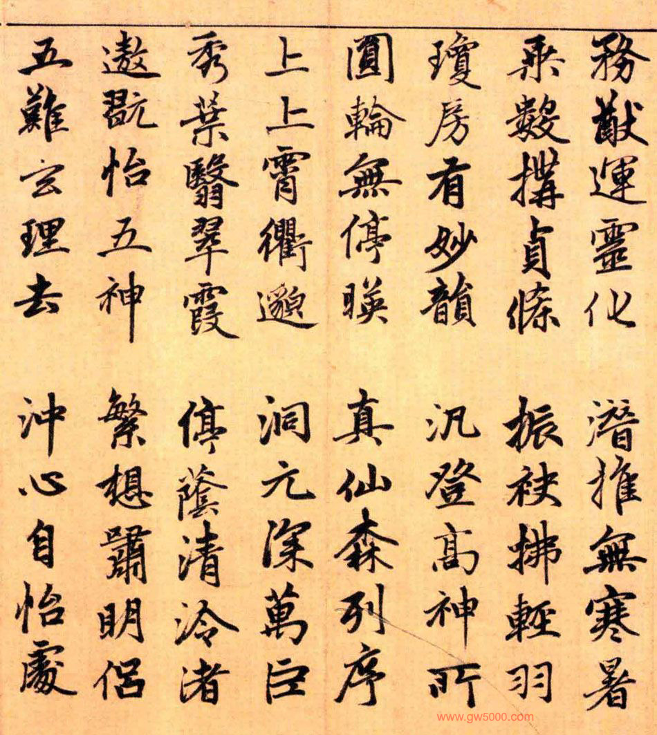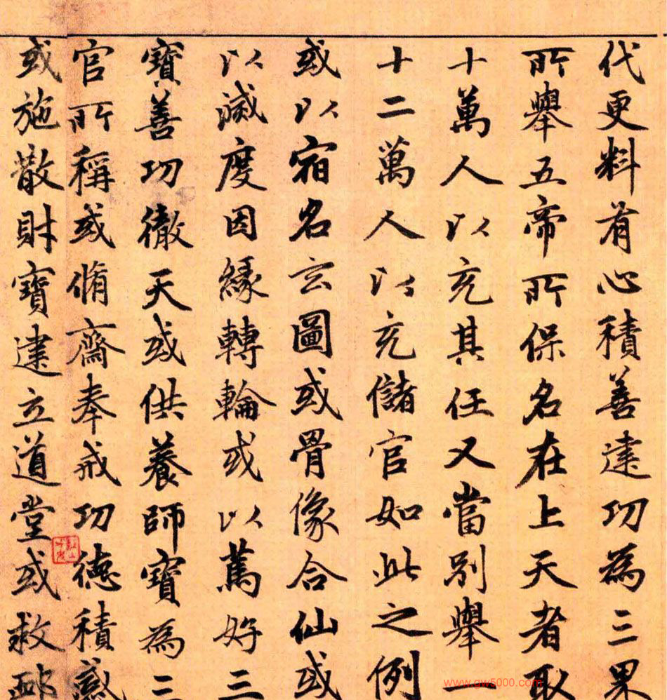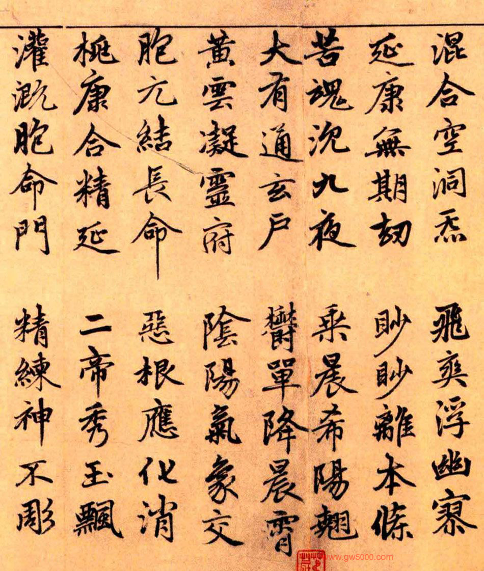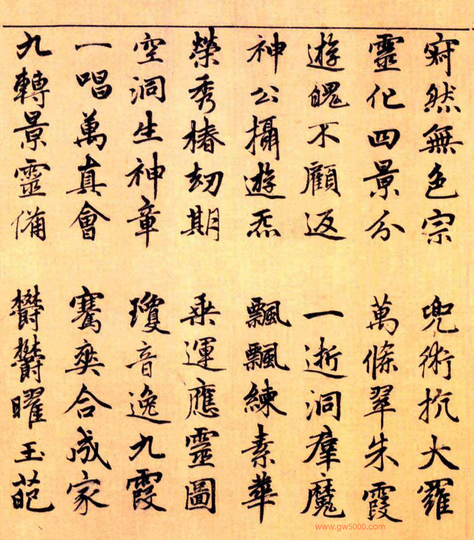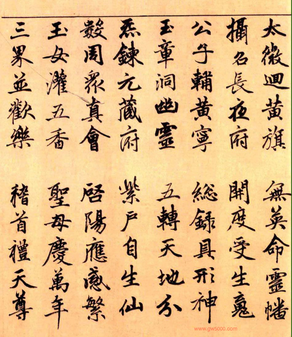 《洞玄灵宝自然九天生神章经》,简称《生神章》,是道教较早的重要经典之一,撰文者不详(约出于东晋)。此卷是辞官归湖州后的赵孟頫,应弟子张雨之请为钱塘隐真庵主何道坚所书,此为存世赵书中少见的长篇巨制,全文五千馀言,书法行笔流畅,字体端庄大方,首尾如一,极见功力。