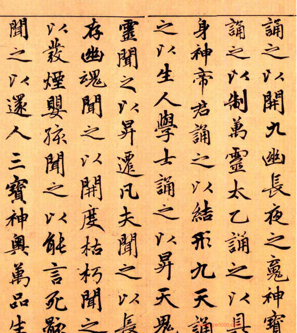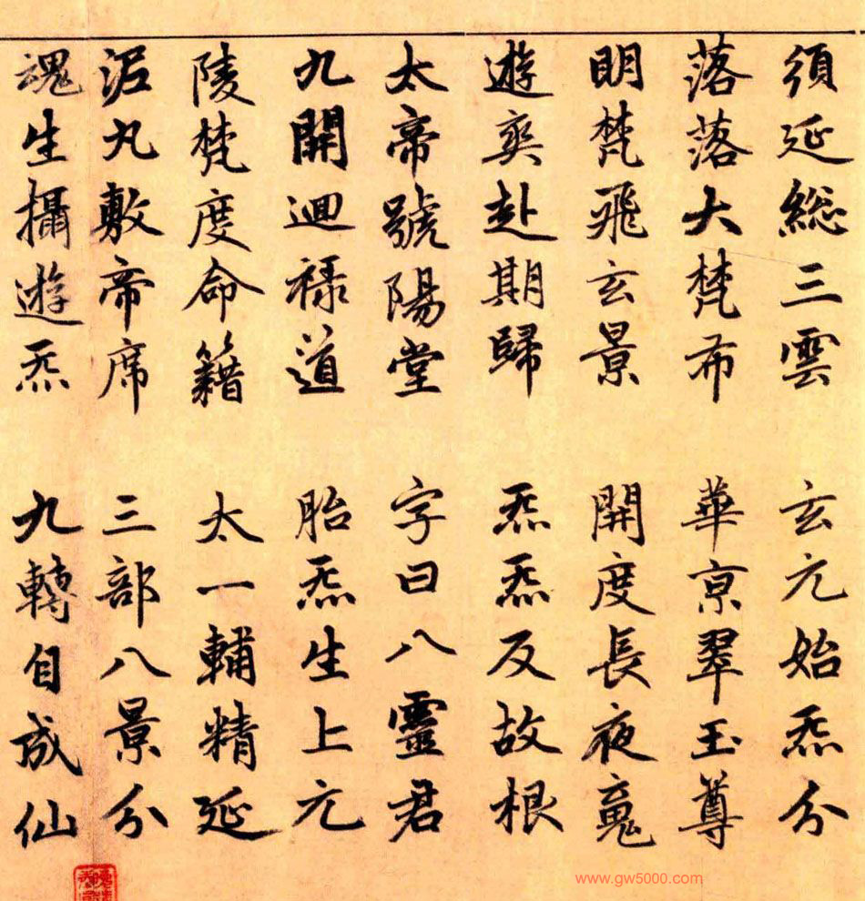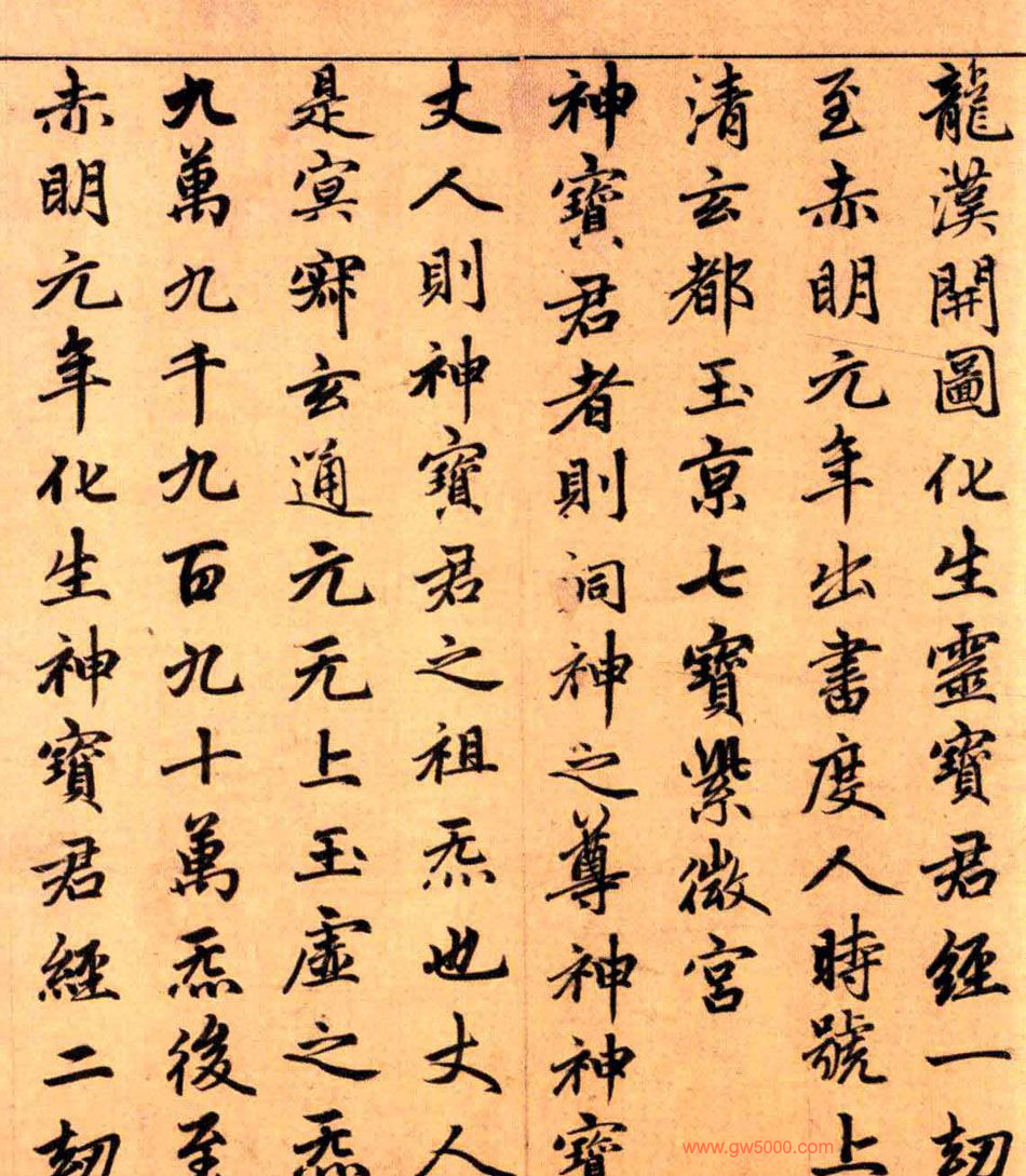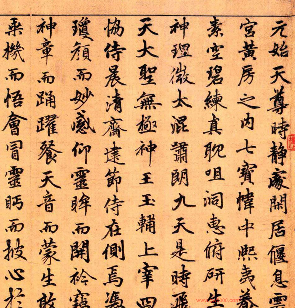元代赵孟頫楷书《洞玄灵宝自然九天生神章经》,纸本,纵34厘米,横1231.5厘米,故宫博物院藏。