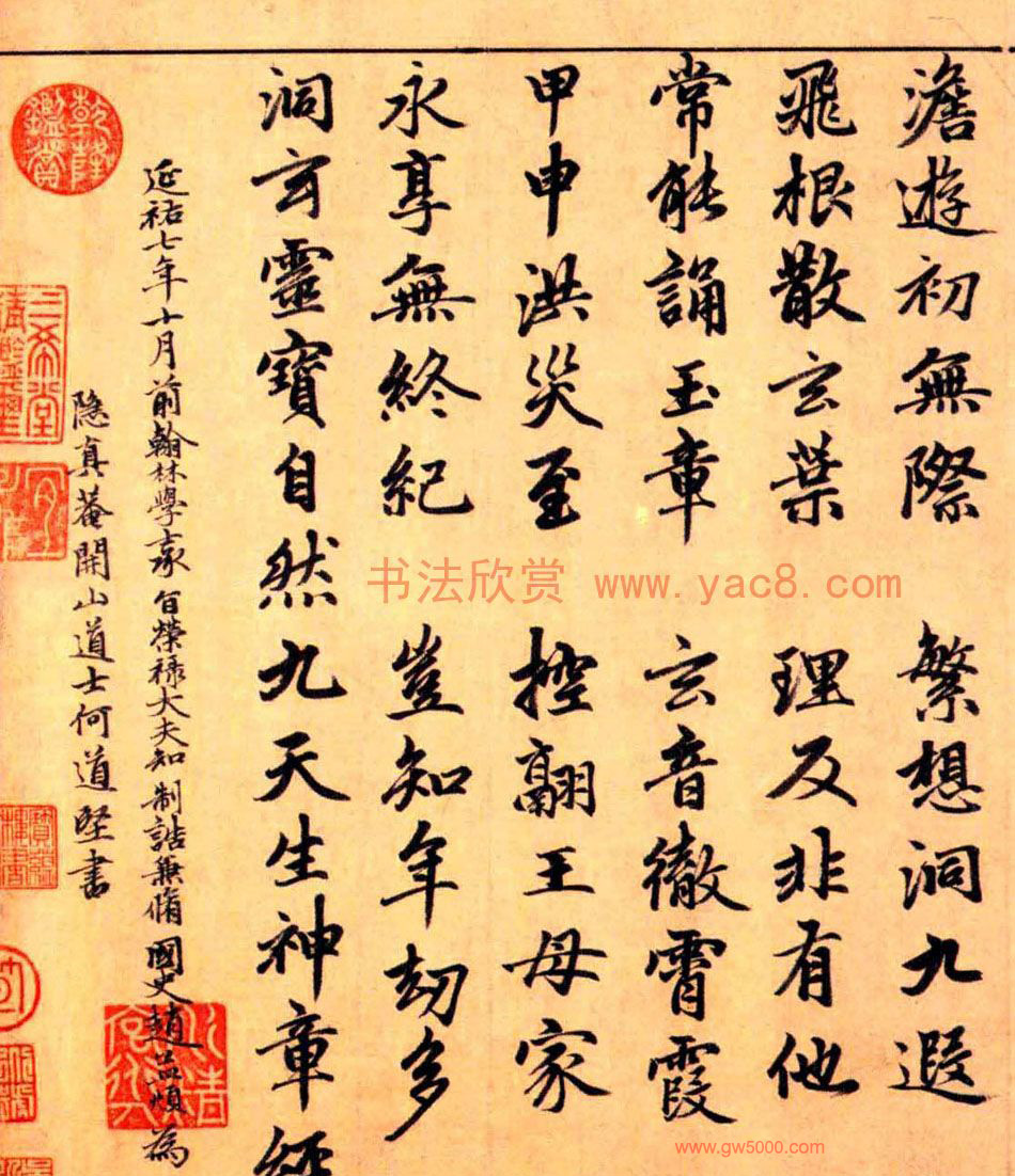 款署:延祐七年(1320)十月,前翰林学士承旨、荣禄大夫、知制诰兼修国史赵孟頫为隐真庵开山道士何道坚书。