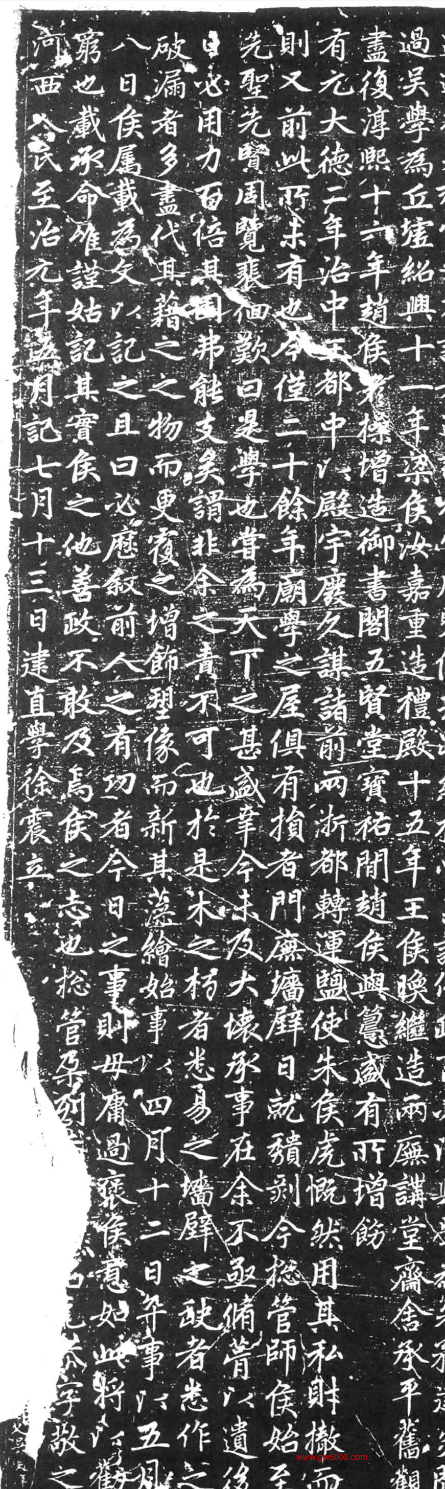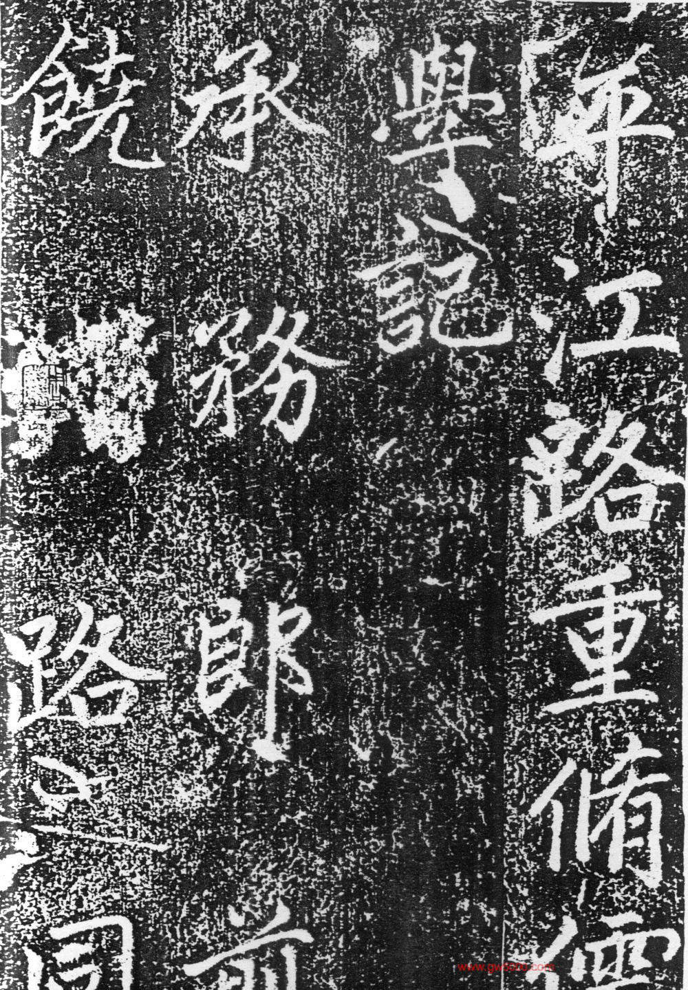 趙孟頫正書《平江路重脩儒學記》,至治元年(1321年)七月十三日,楊載撰文,趙孟頫書丹並篆額,拓紙高173釐米、寬91釐米,額失拓。清繆荃孫等《江蘇省通志稿》有考。