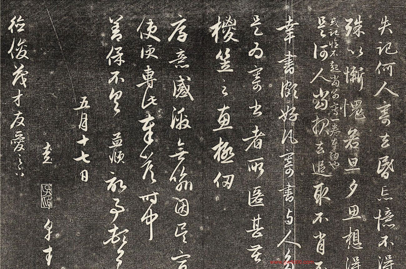 》。信中文字竖画多向左倾,结体欠安稳端庄,笔道方扁稚嫩,并无赵书笔力沉着、圆润厚重而又姿媚潇洒的特点,故为伪作无疑。