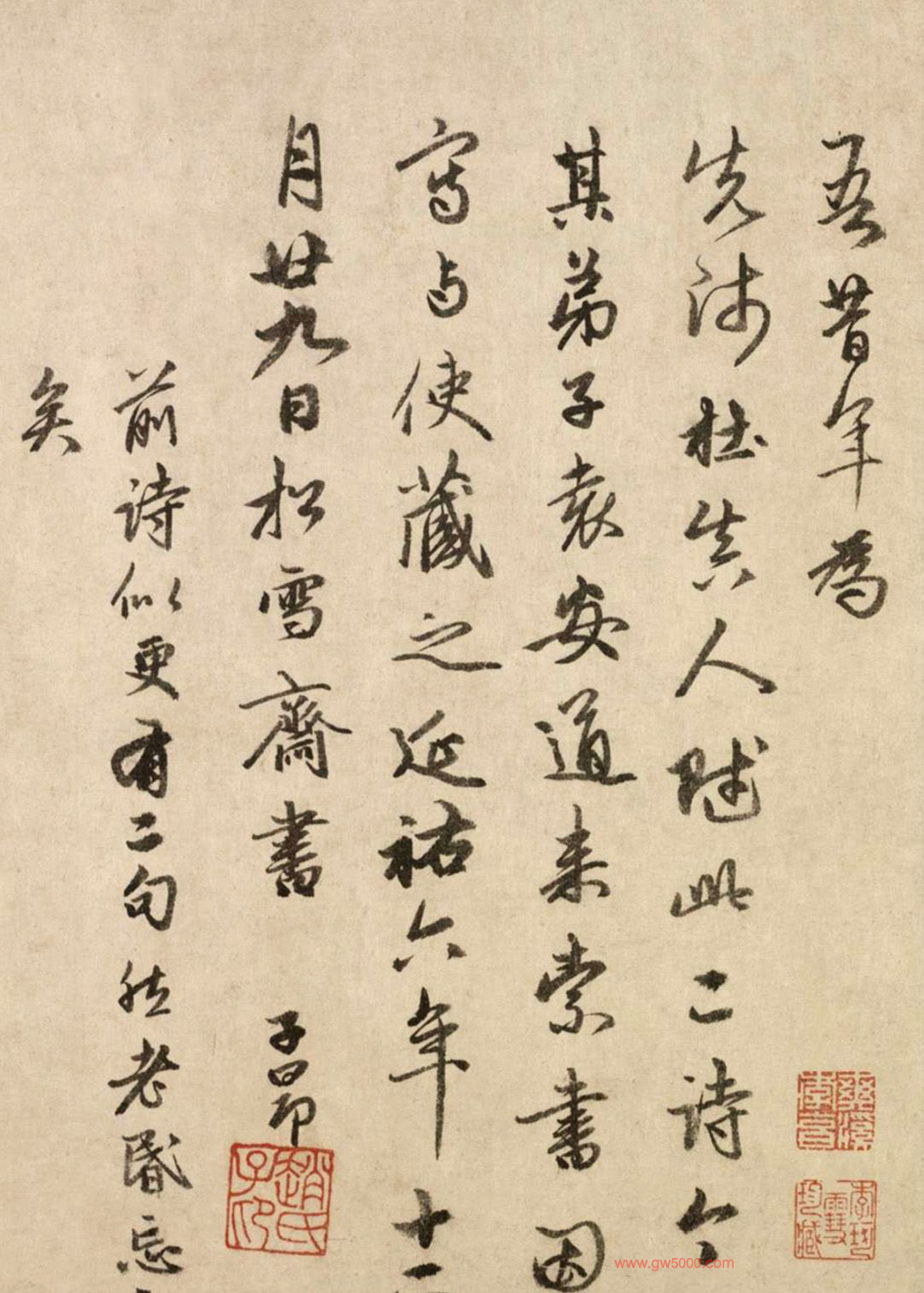 赵孟頫自作诗《寄题杜尊师白云庵琼秀亭》二首,书于元延祐六年(1319年),赵松雪时年66岁。故宫博物院藏。