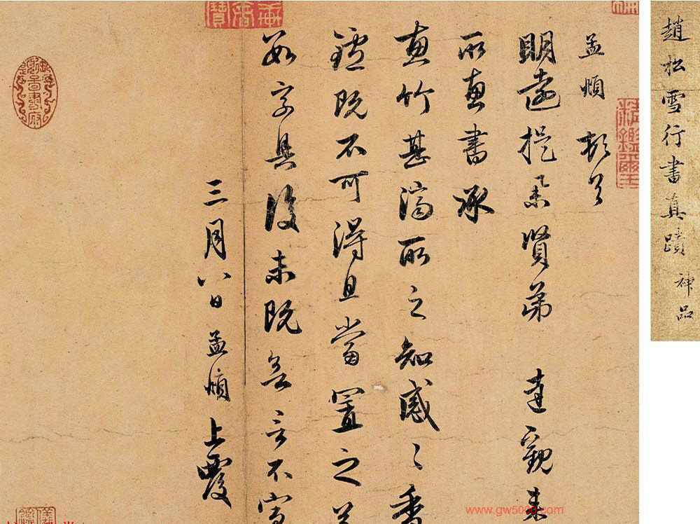 孟頫顿首明远提举贤弟:达观来,得所惠书,承惠竹,甚济所乏,知感知感。香炉既不可得,且当置之。草草数字,具复,未既欲言。不宣。三月八日。孟頫上覆