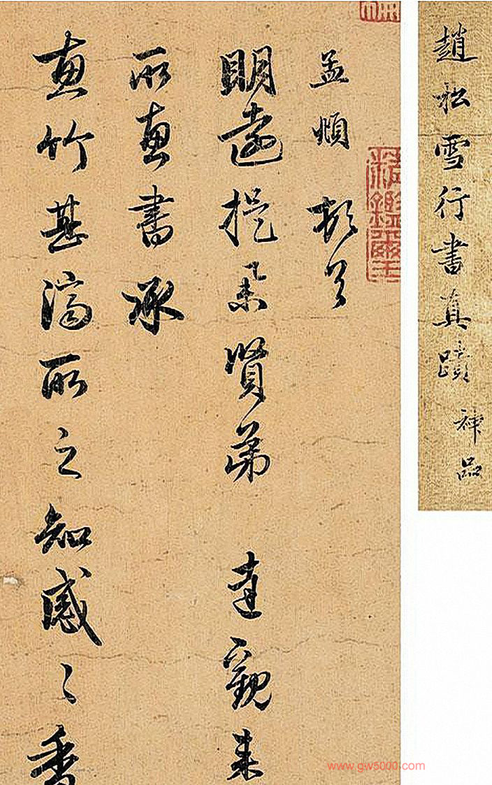 赵孟頫行草书册页《惠竹帖》(疑),又称《明远提举帖》,元黄纸本,24×28厘米,台湾陈氏藏。
