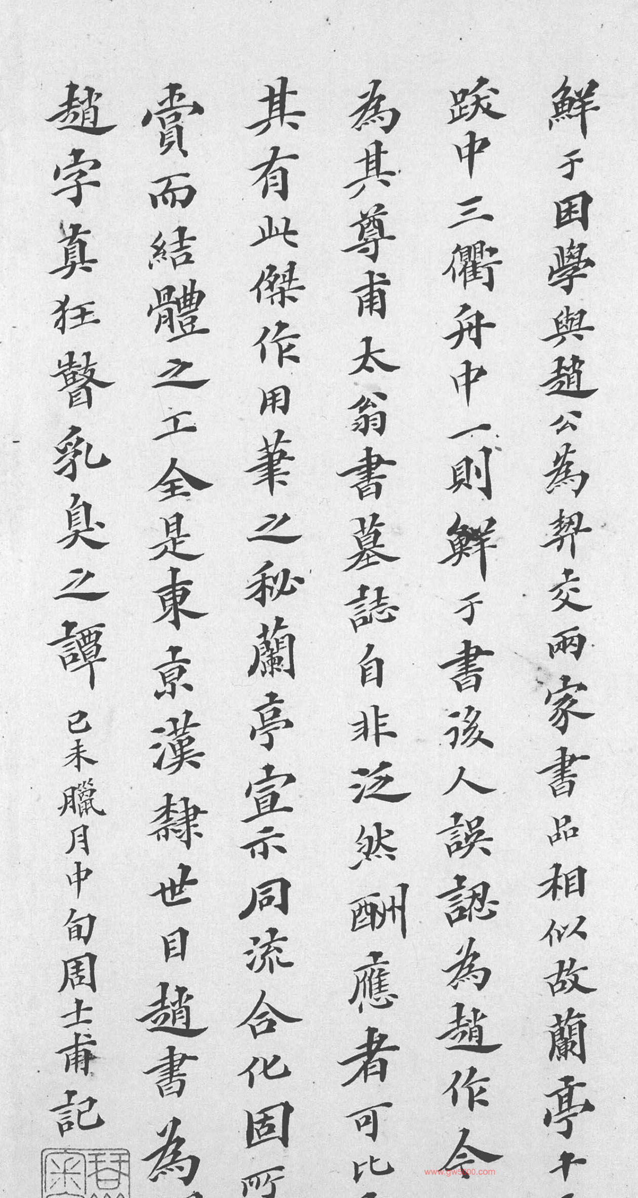 赵孟頫书法石刻《鲜于光祖墓志》,周砥撰文、赵孟頫小楷书志文,盛彪作后记。纸本墨拓,帖芯23.3×9.8厘米。北京大学图书馆藏。