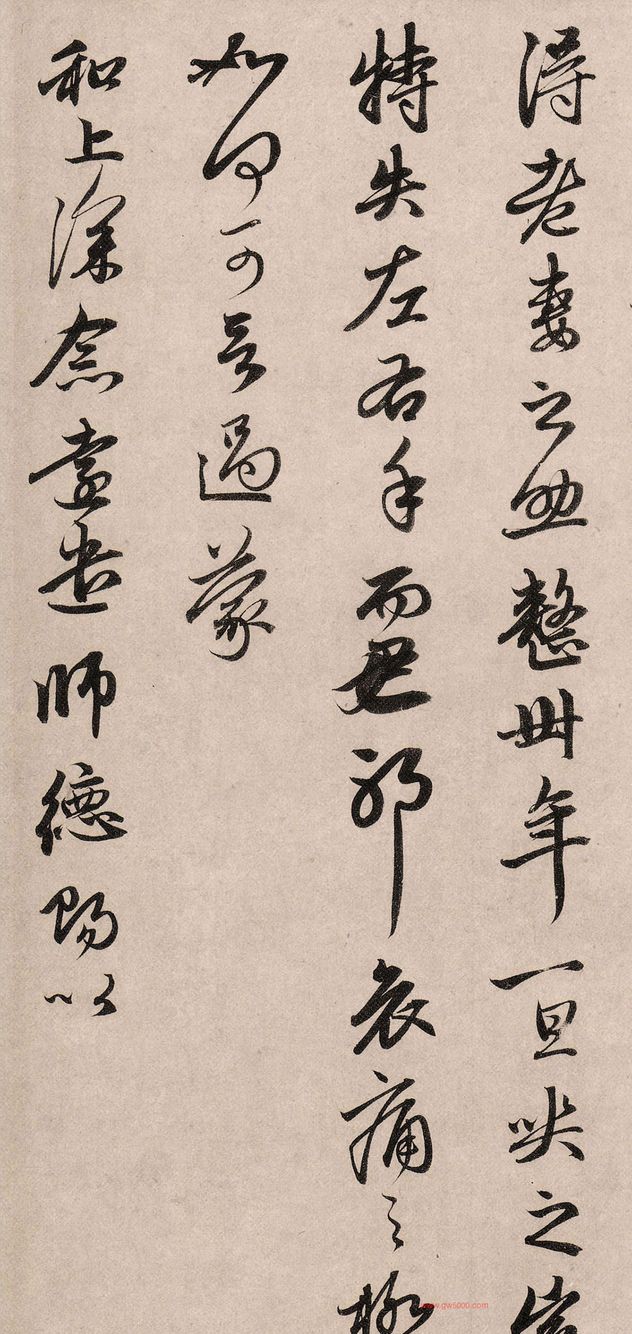 此信主要内容为赵孟頫妻管道昇亡故后寄托哀思及求中峰和尚所做佛事,信札内容围绕着对管夫人病故所倾诉的哀情,以及向中峰和尚所吐露的思绪,反映了赵雪松晚年精神世界的丰富性及对管道昇的一往深情。该帖笔法清润精致,结构端丽严谨,形神疏放飘逸,气韵苍劲高古,姿媚中增添了雄健之势,凸显老年人独具特色,堪称直入右军之室。
