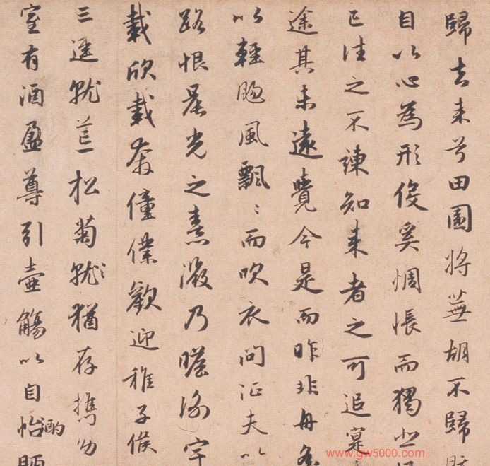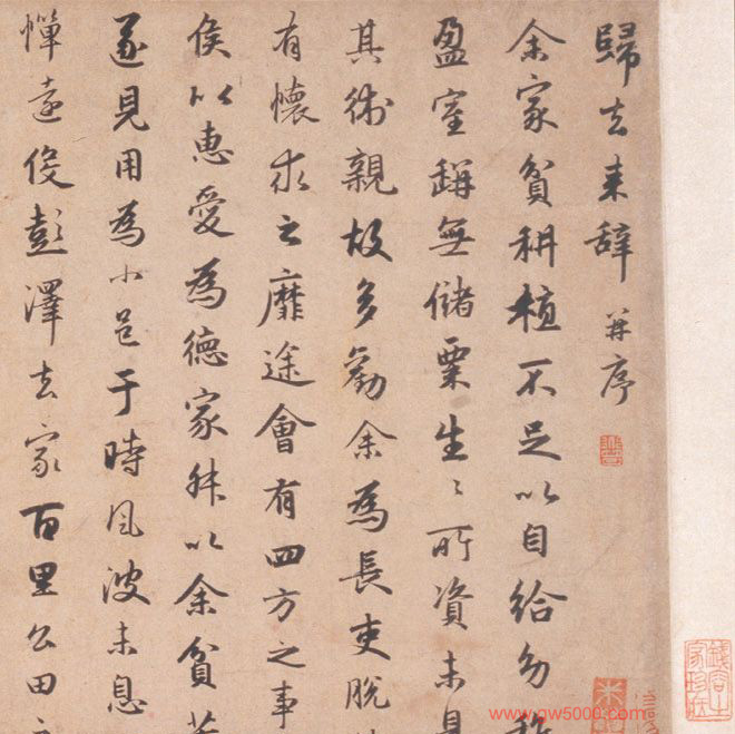 元代赵孟頫行书归去来辞卷,纵25.9厘米;横139.4厘米,上海博物馆藏。