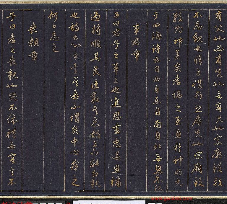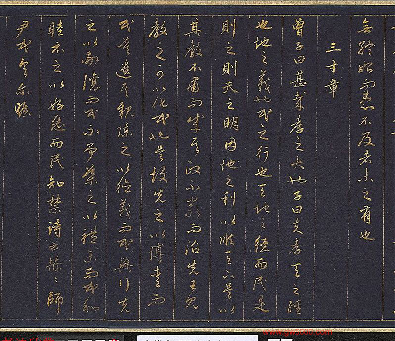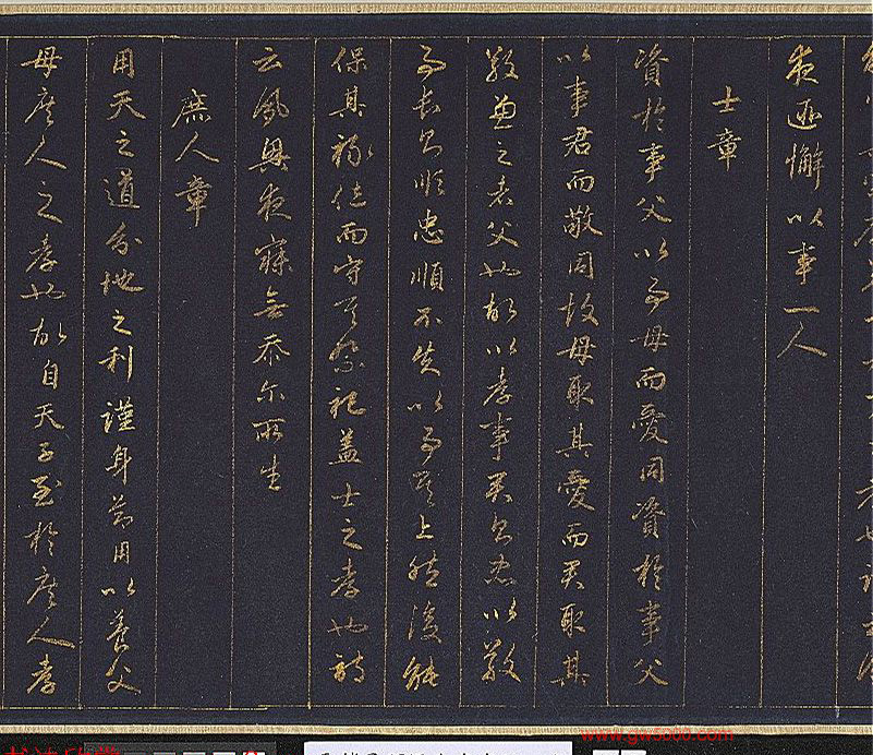 元赵孟頫泥金书孝经卷,台北故宫博物院藏。
