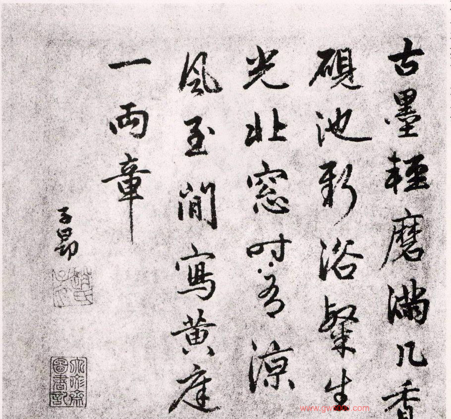 古墨轻磨满几香。砚池新浴粲生光。北窗时有凉风至。间写黄庭一两章。子昂。