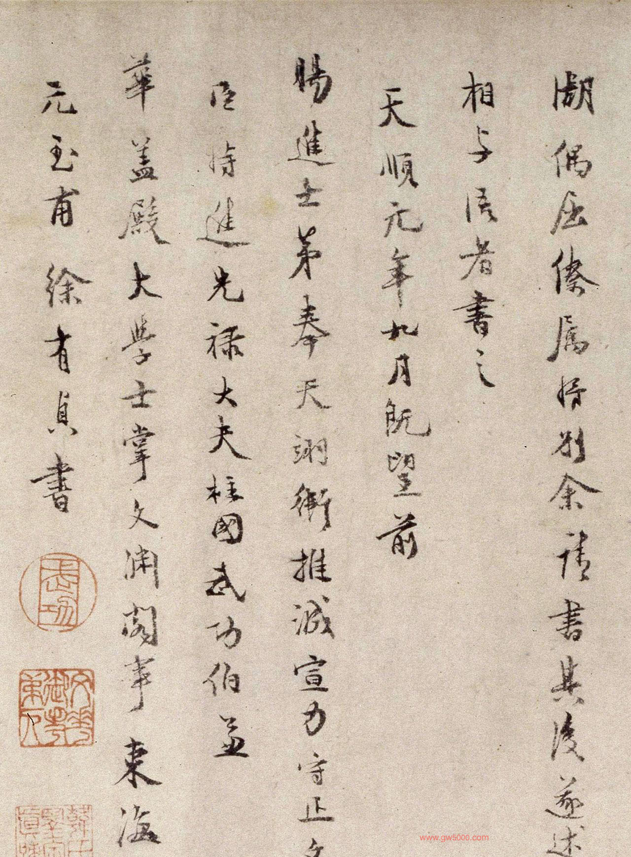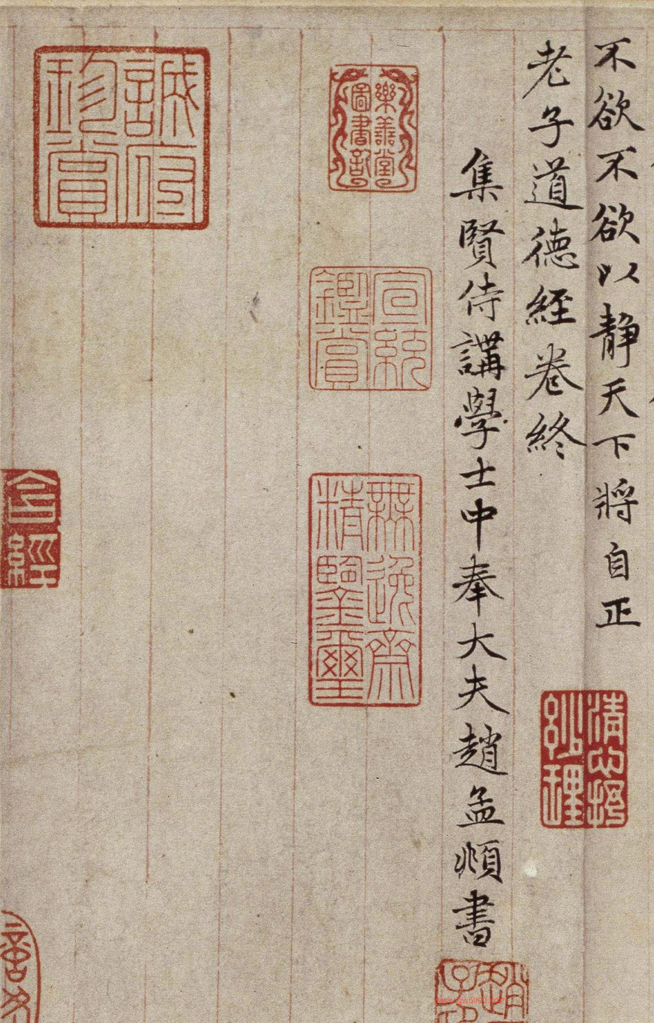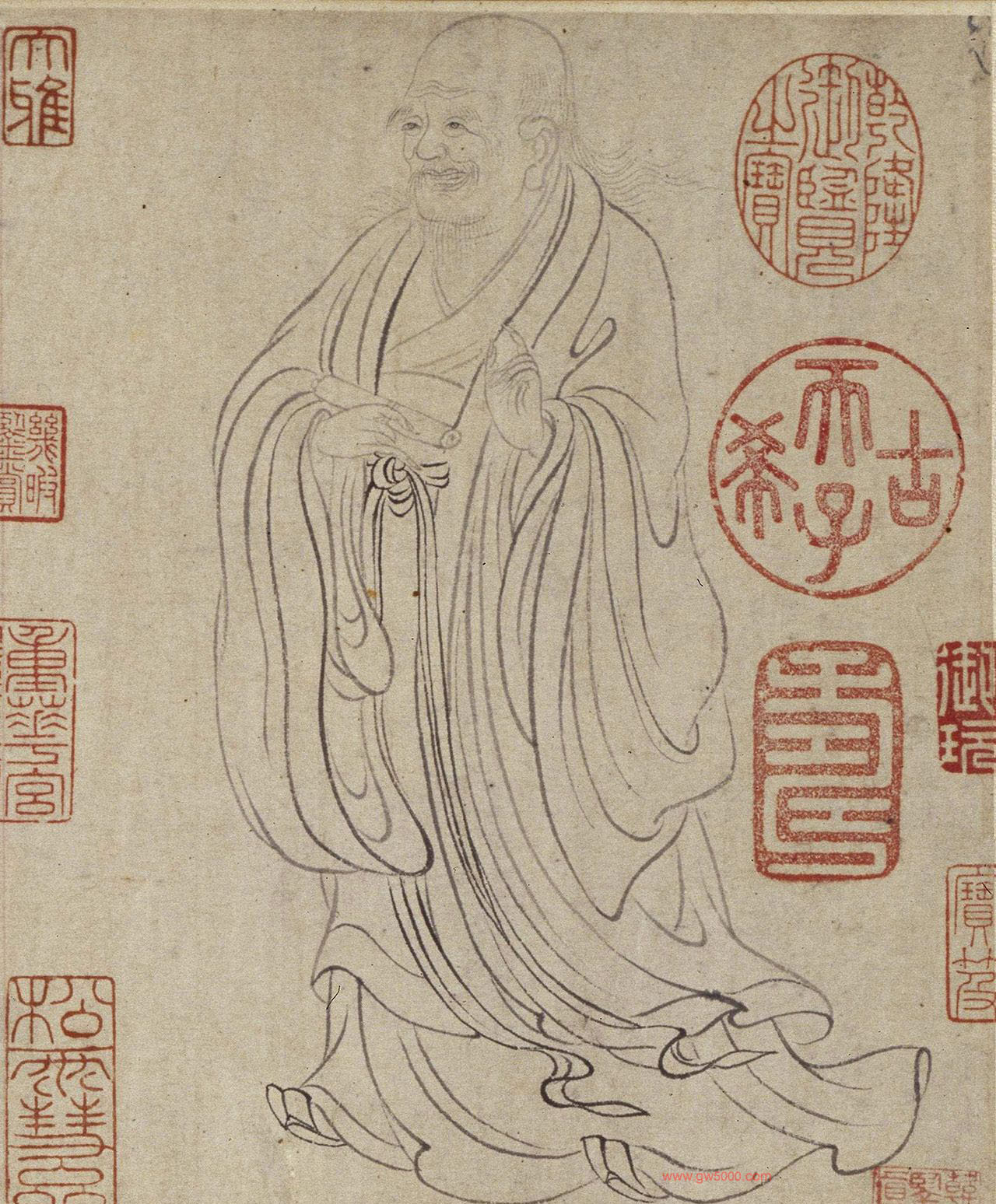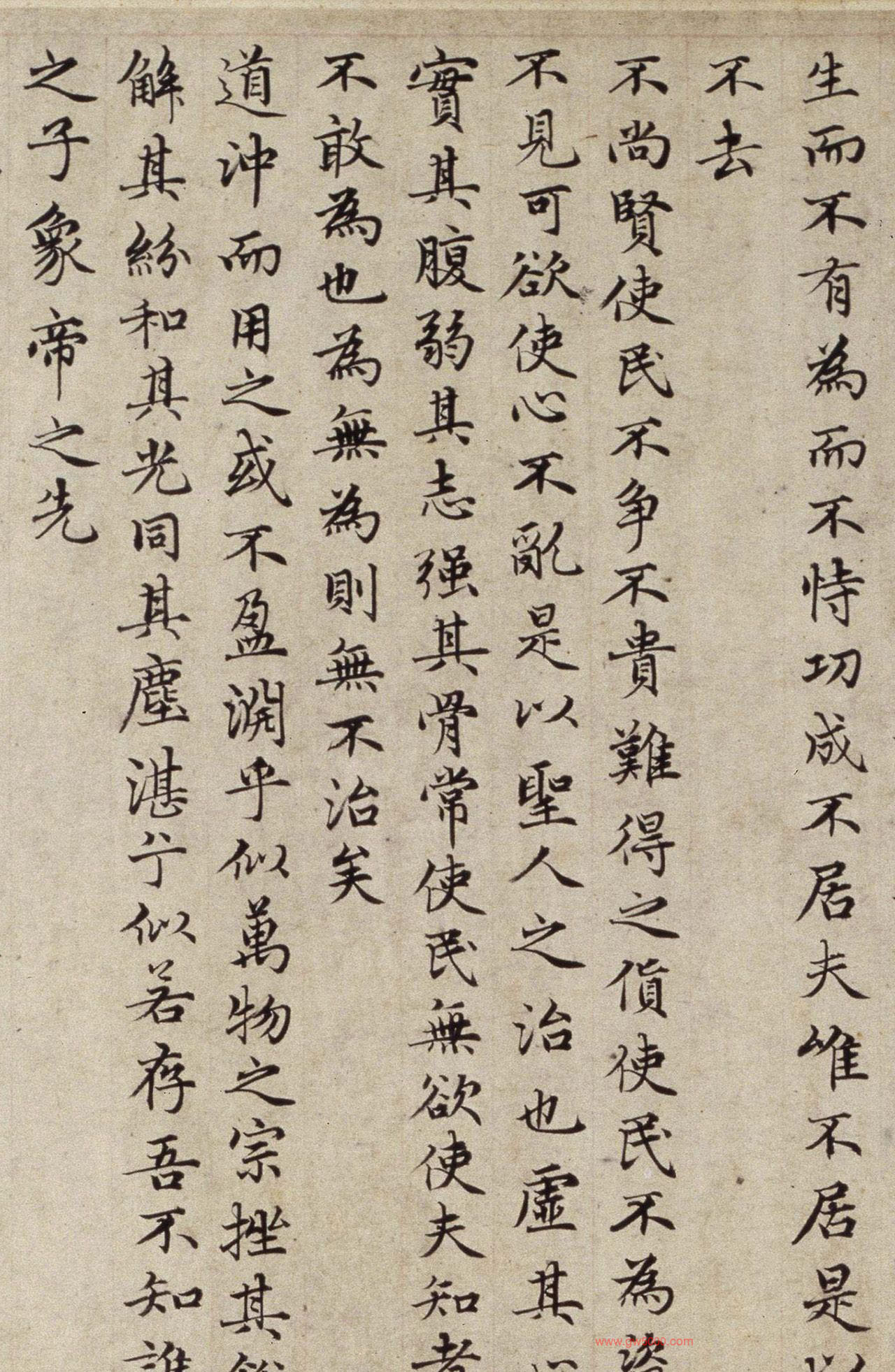 此作略具赵孟頫书法的形态,然而点画柔弱,随字数渐增而笔力随之减弱,殊少体势精严、气息首尾一致的赵氏小楷特点,老子像的勾勒则缺乏赵氏人物画中婉转自如的线条,故为伪作。