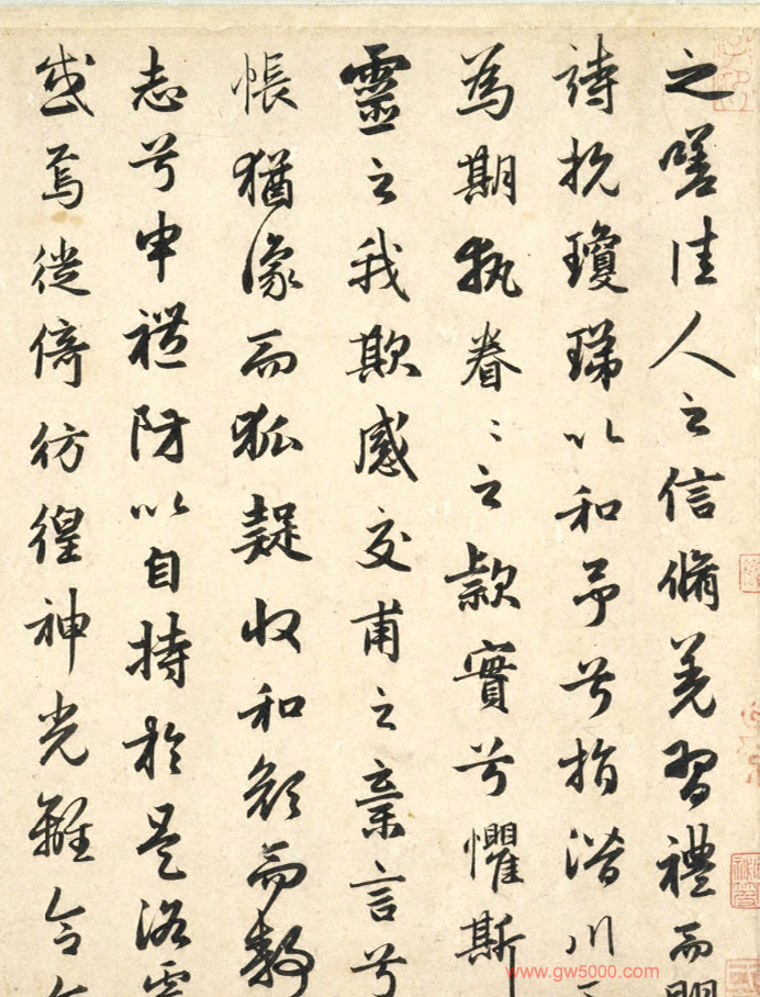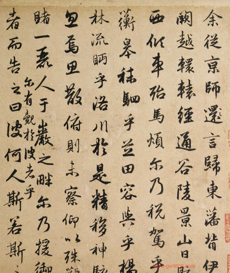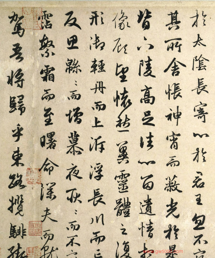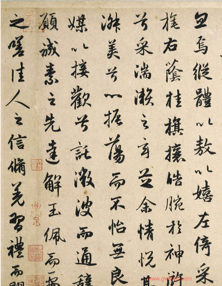 1297年(大德元年)赵孟頫为张渊(1264年生,字清夫)书《洛神赋并序》卷,25.8x234.5cm,普林斯顿大学艺术博物馆藏。