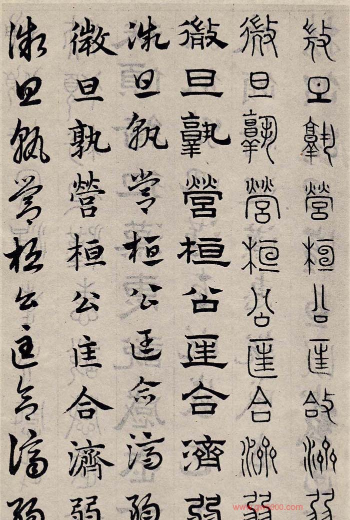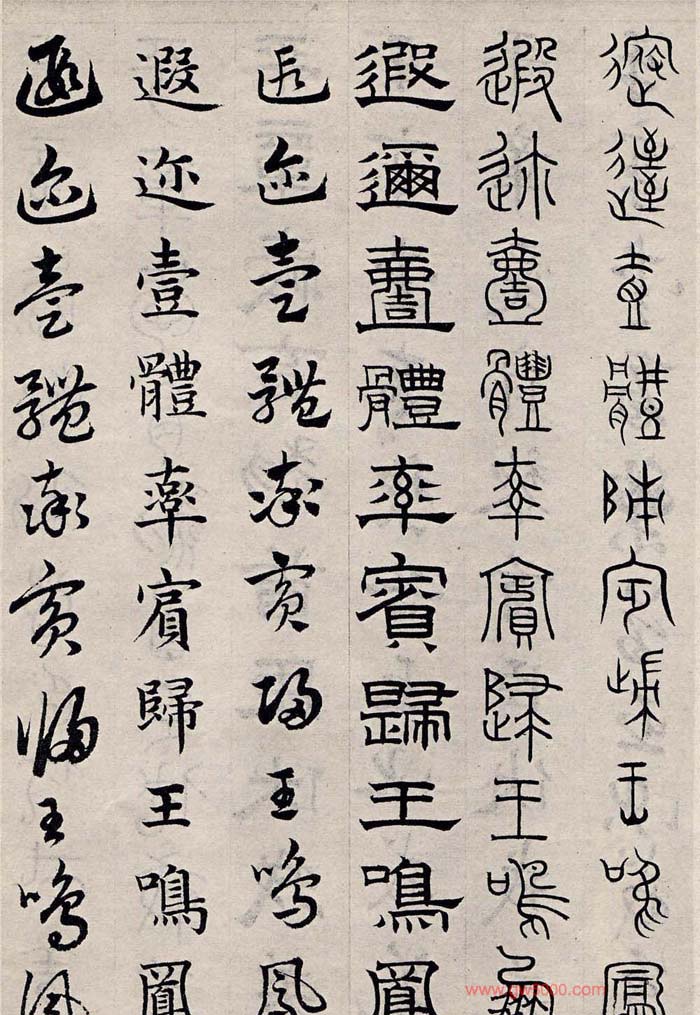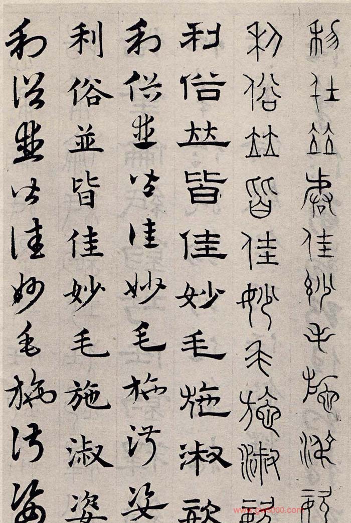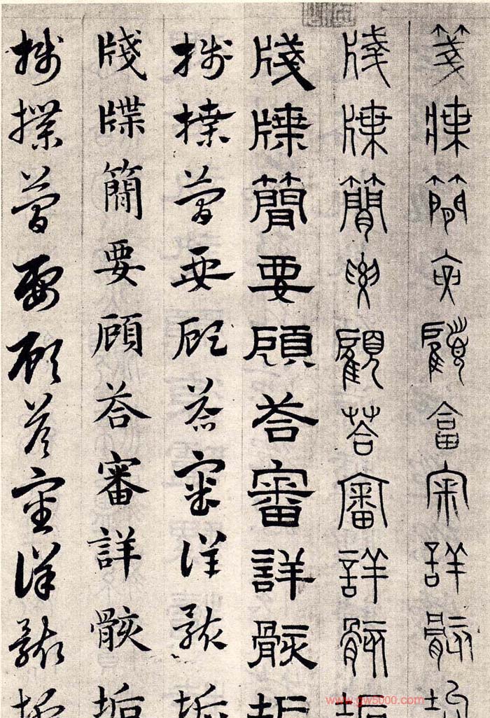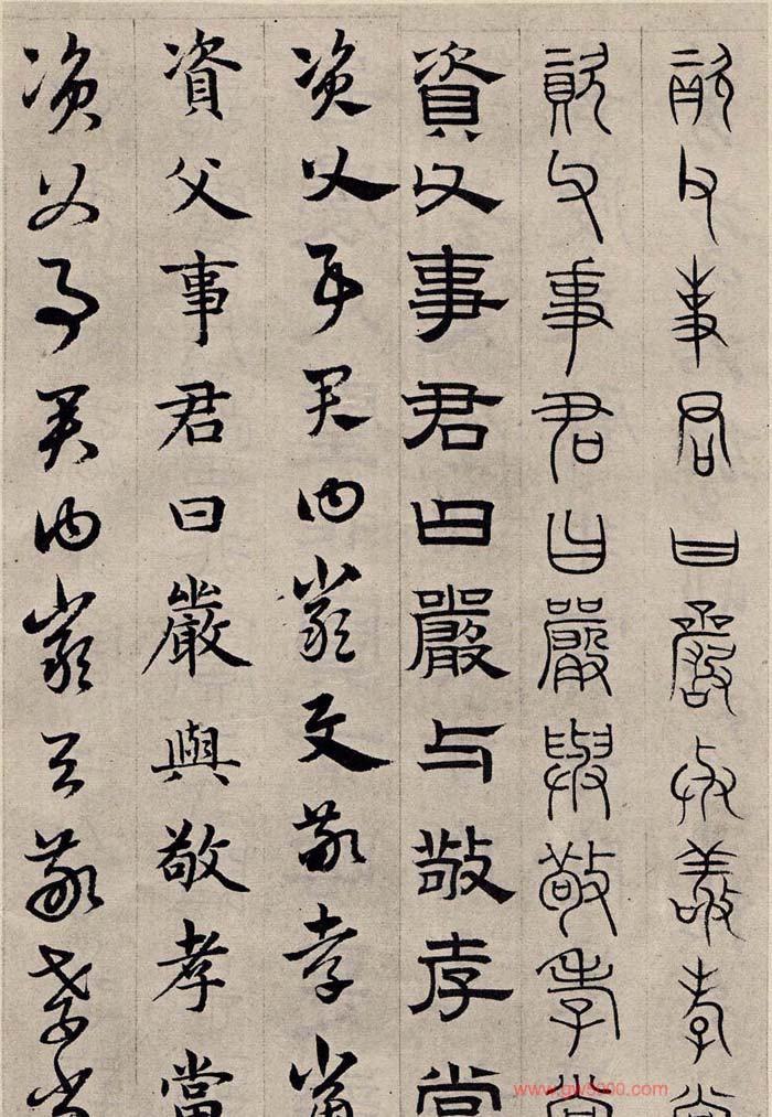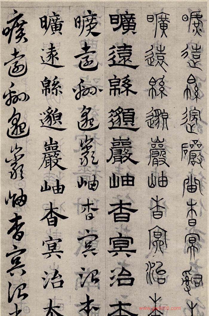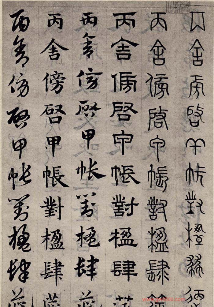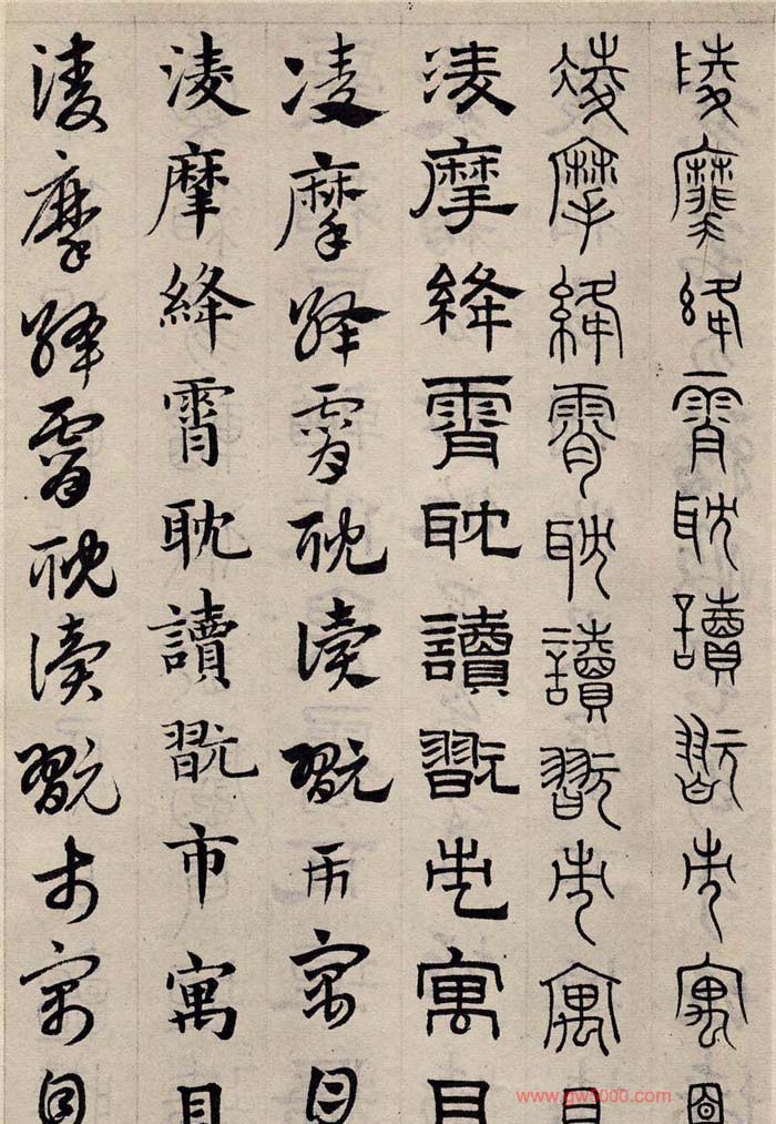 此卷赵孟頫《六体千字文》,分别作古篆、小篆、隶书、章草、楷书、今草六体。徐邦达先生《古书画伪讹考辨》记此卷“篆书尚平正少疵,草、楷诸体,结体既不稳,用笔更见轻弱光嫩,全无一点赵氏晚年书风气。只末后小楷款书还得到五六成貌似,当然必非真迹。