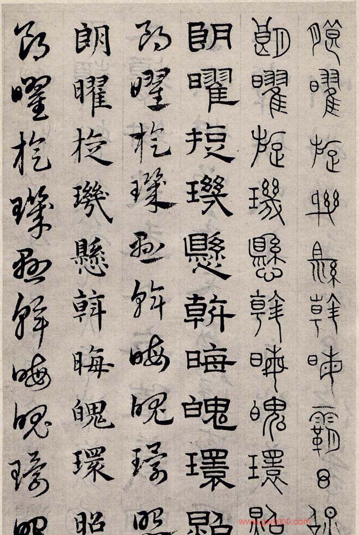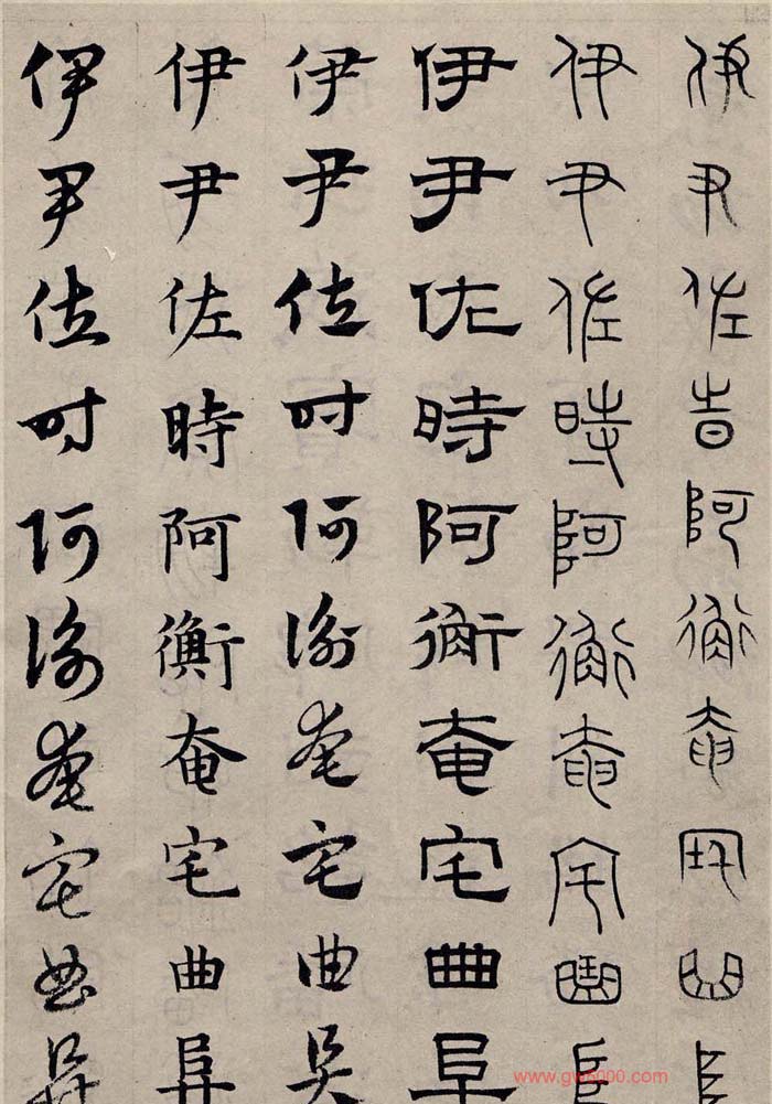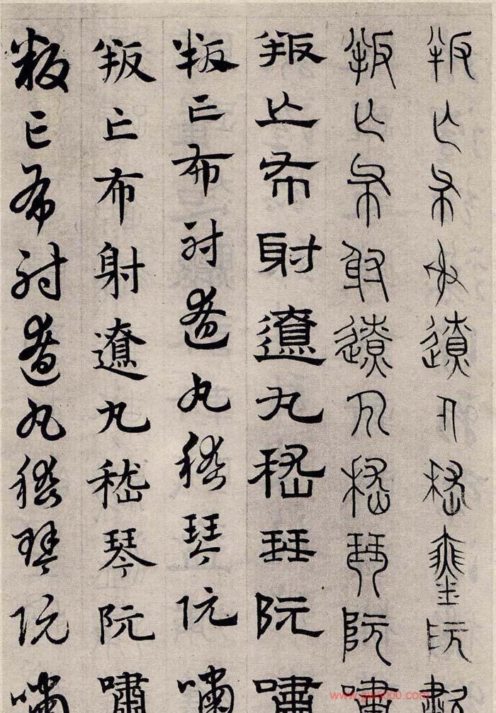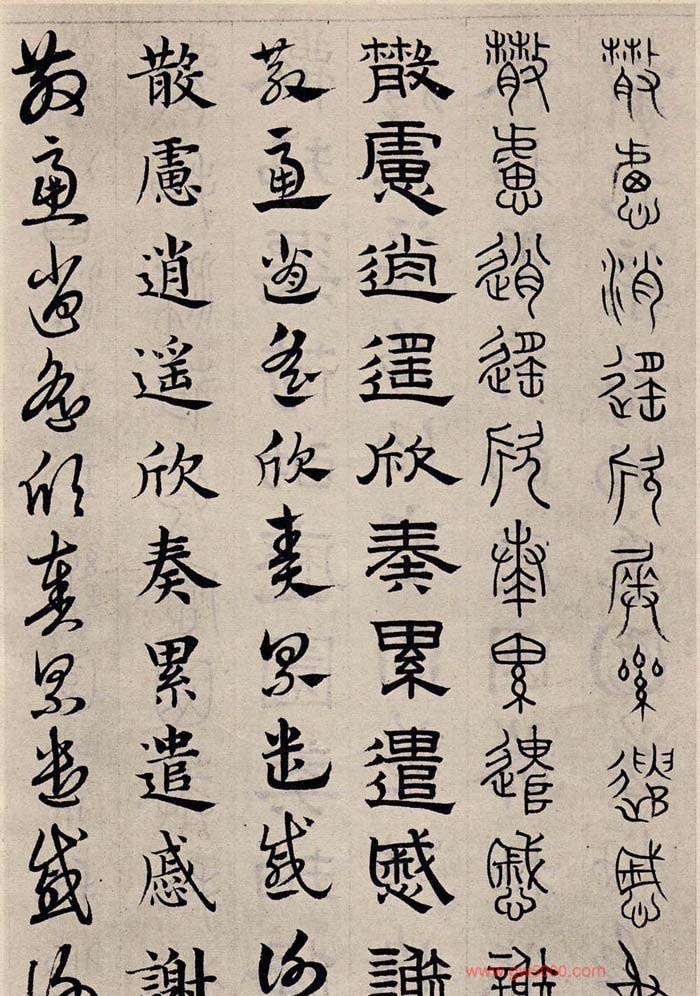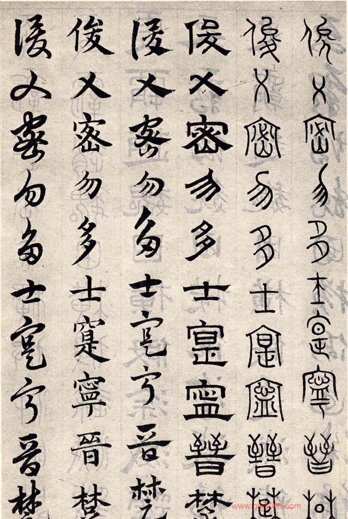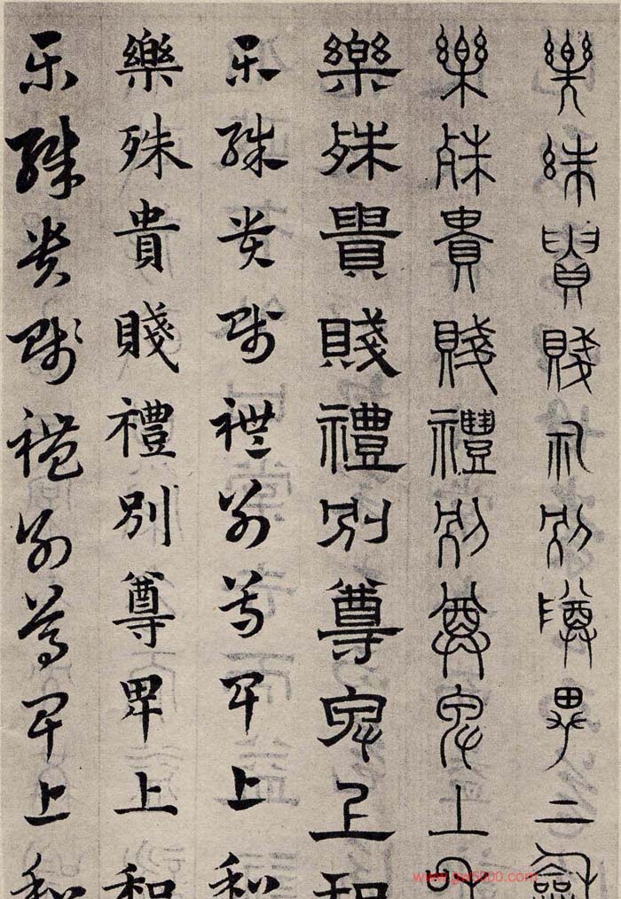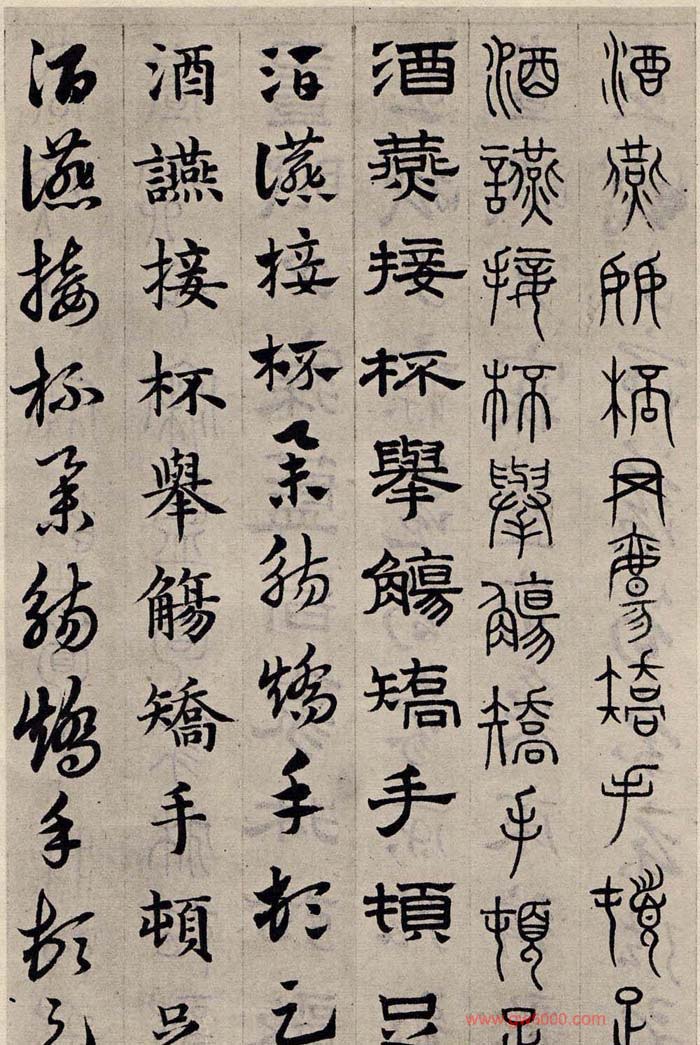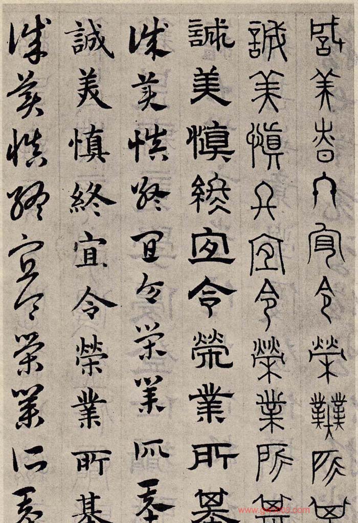 此卷赵孟頫《六体千字文》,分别作古篆、小篆、隶书、章草、楷书、今草六体。徐邦达先生《古书画伪讹考辨》记此卷“篆书尚平正少疵,草、楷诸体,结体既不稳,用笔更见轻弱光嫩,全无一点赵氏晚年书风气。只末后小楷款书还得到五六成貌似,当然必非真迹。