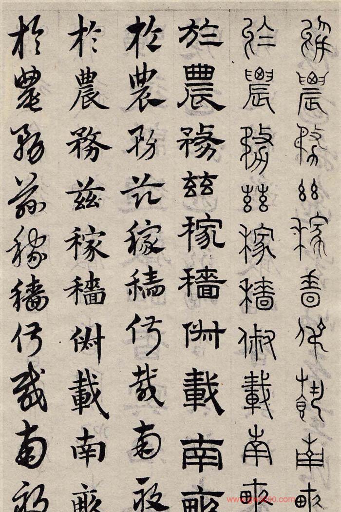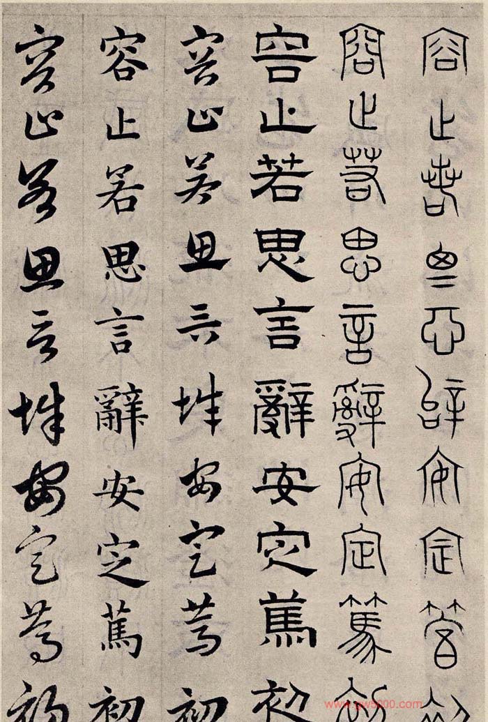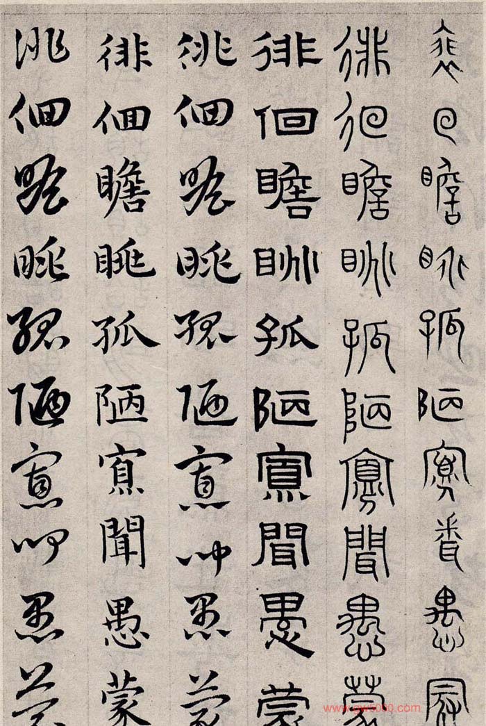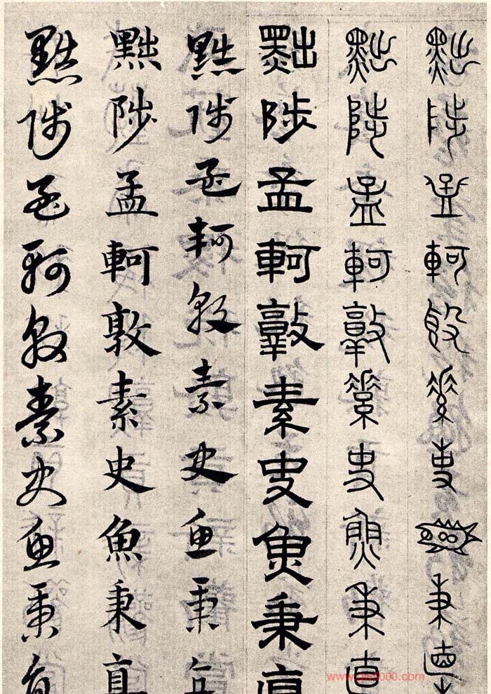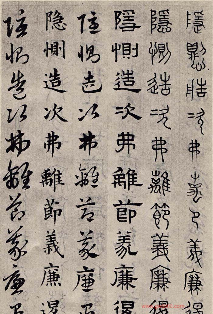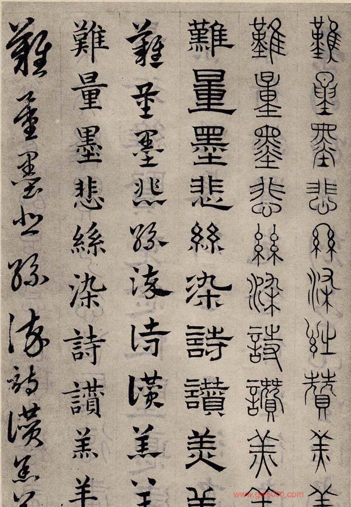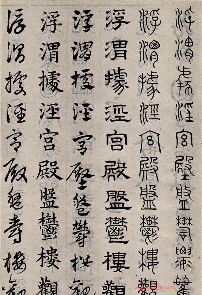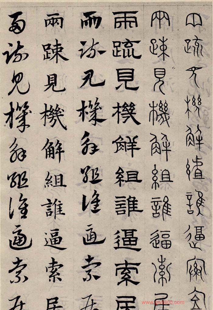 此卷赵孟頫《六体千字文》,分别作古篆、小篆、隶书、章草、楷书、今草六体。徐邦达先生《古书画伪讹考辨》记此卷“篆书尚平正少疵,草、楷诸体,结体既不稳,用笔更见轻弱光嫩,全无一点赵氏晚年书风气。只末后小楷款书还得到五六成貌似,当然必非真迹。