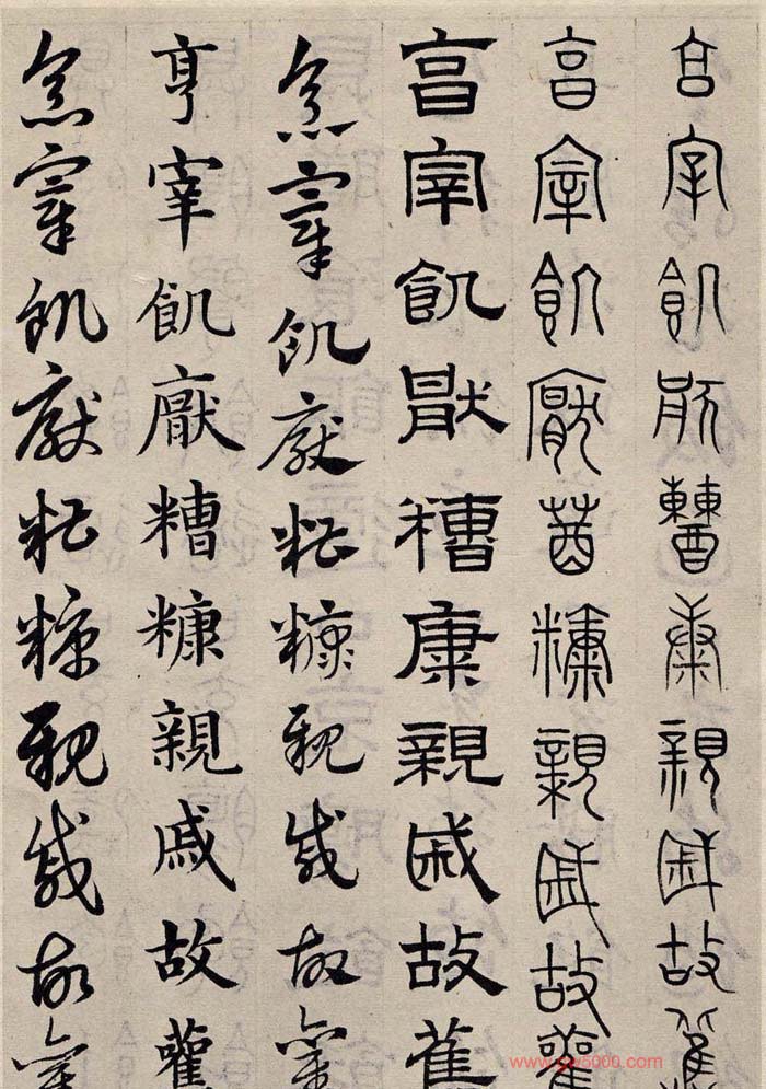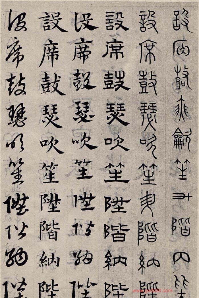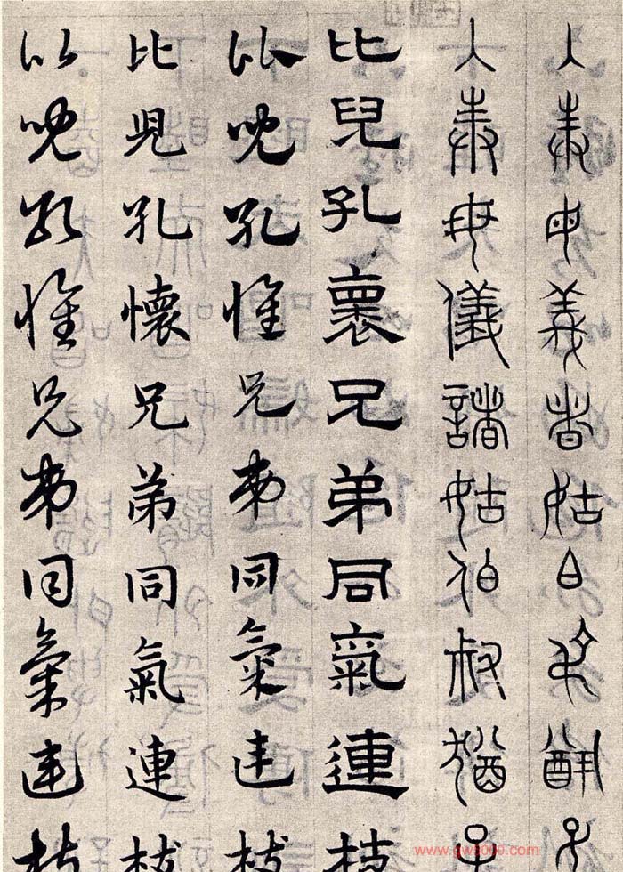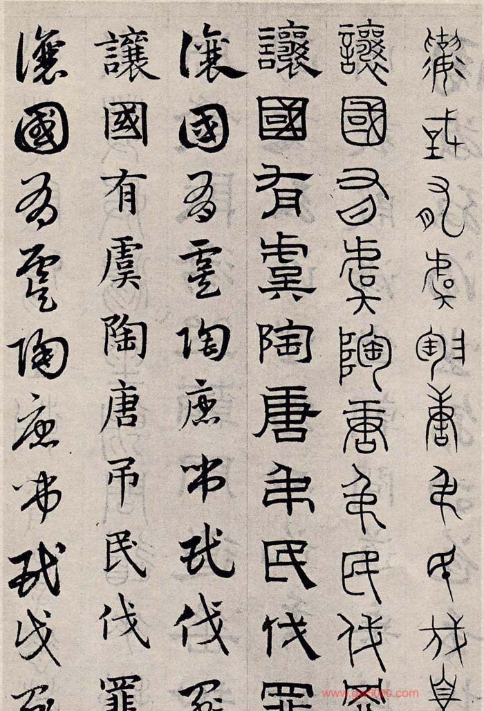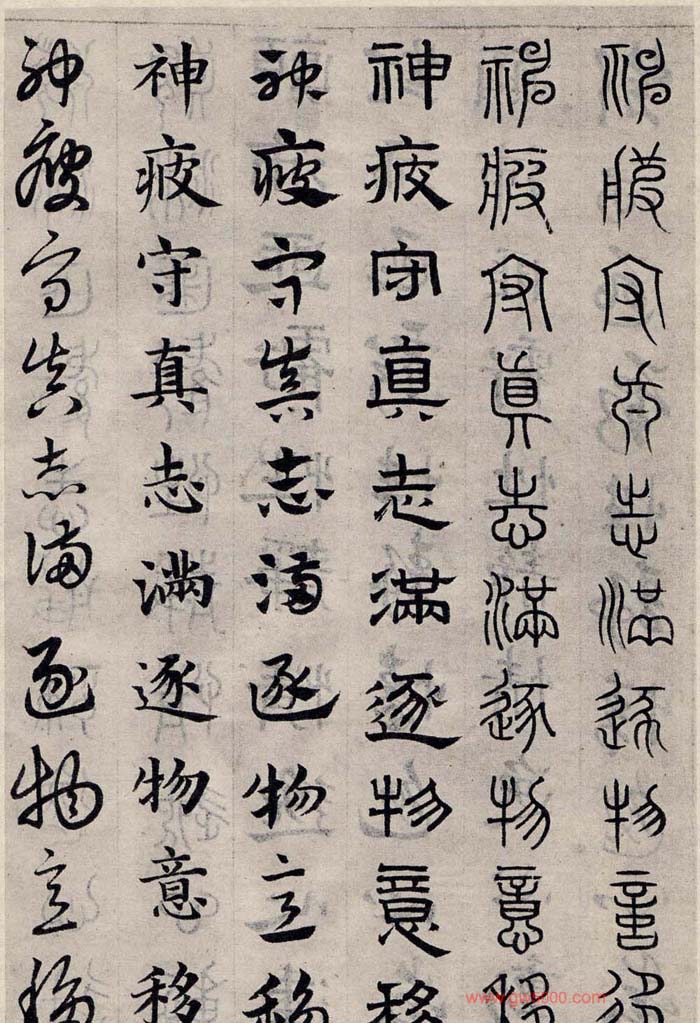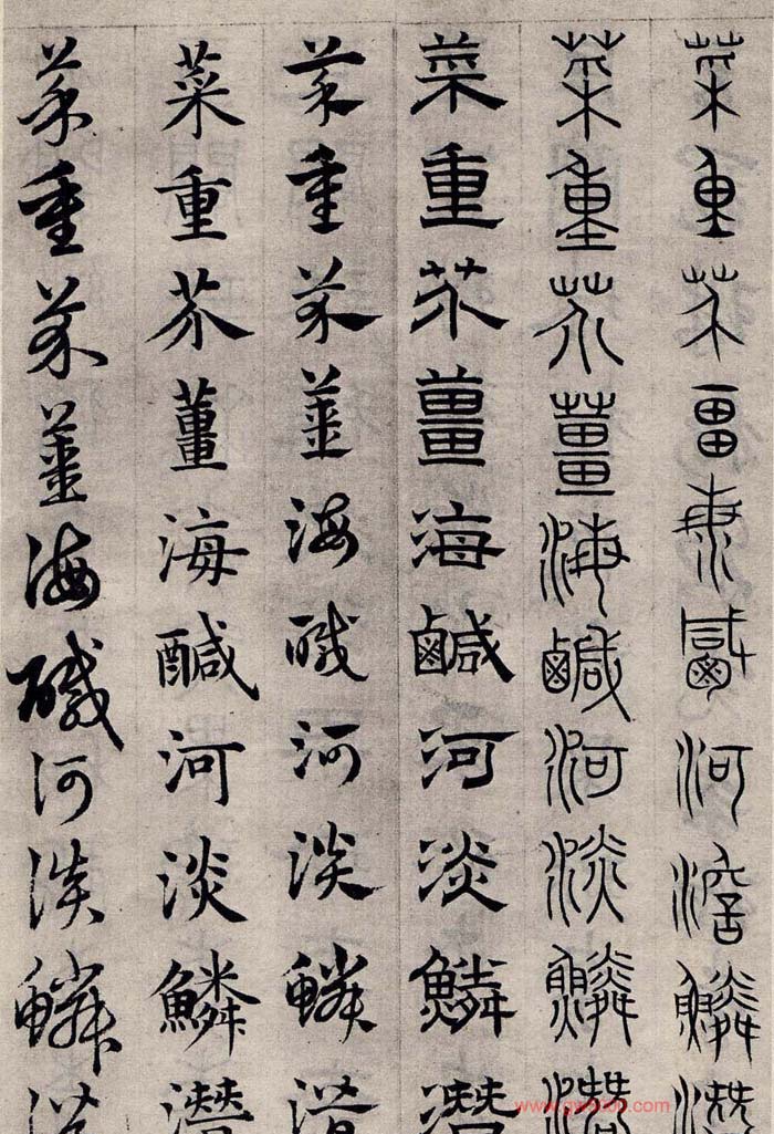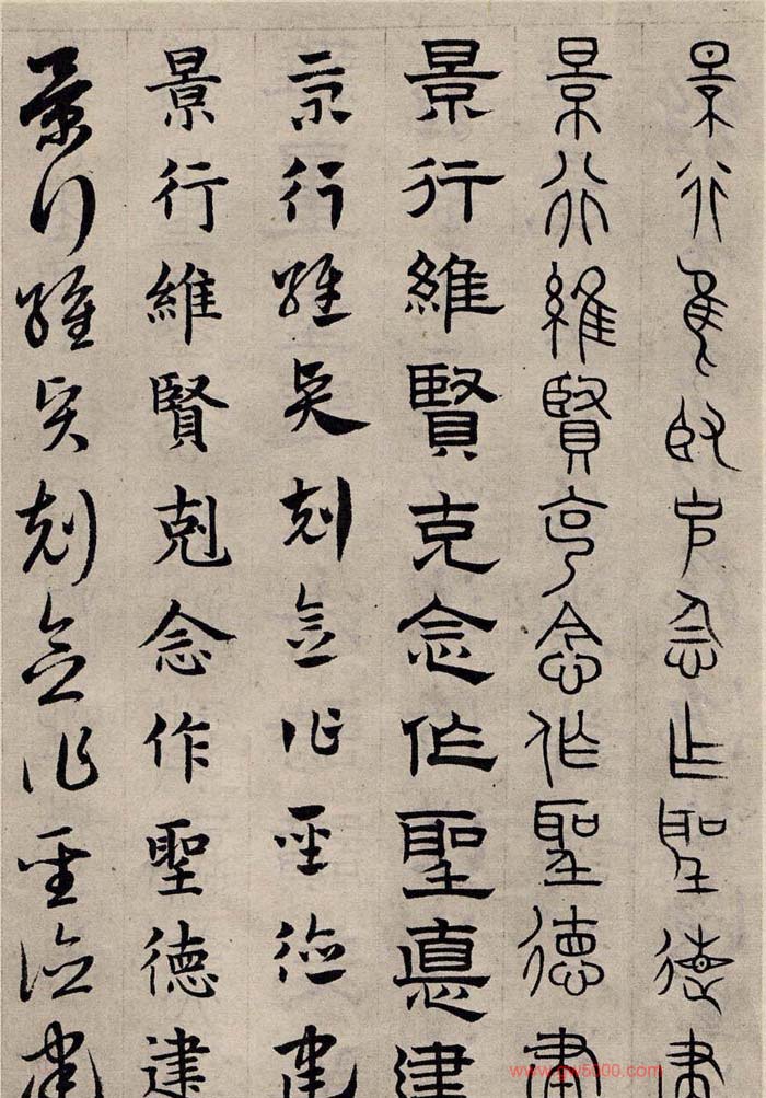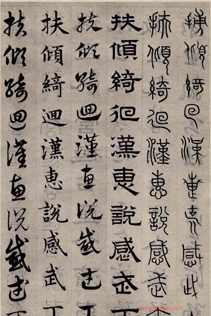 此卷赵孟頫《六体千字文》,分别作古篆、小篆、隶书、章草、楷书、今草六体。徐邦达先生《古书画伪讹考辨》记此卷“篆书尚平正少疵,草、楷诸体,结体既不稳,用笔更见轻弱光嫩,全无一点赵氏晚年书风气。只末后小楷款书还得到五六成貌似,当然必非真迹。