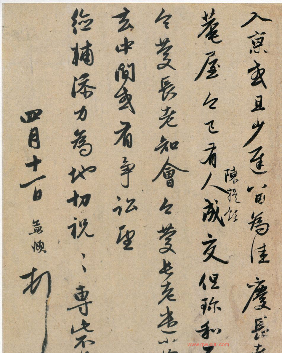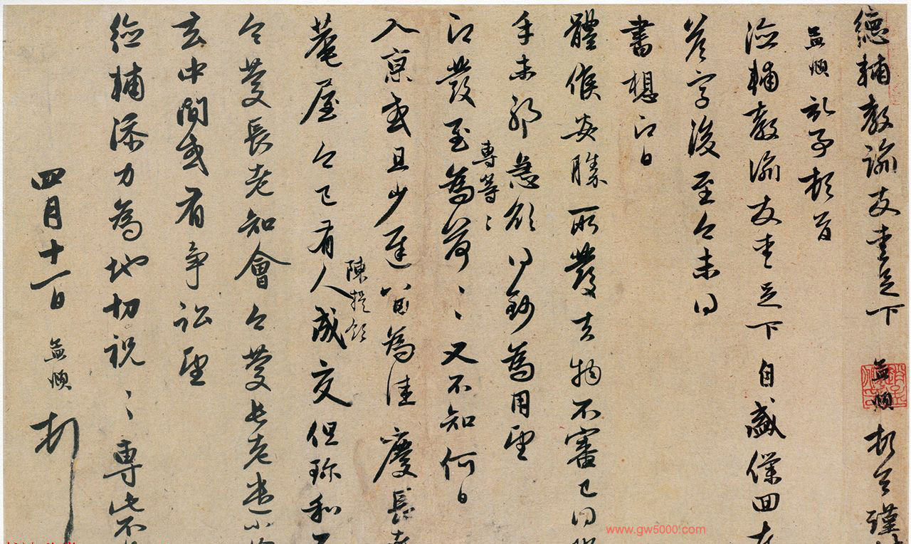 信中述“不知何日入京”,所署日期为“四月十一日”。对照《年谱》,大德二年春,赵曾应召赴京书写《大藏经》,故此札当写于是年动身之前。
