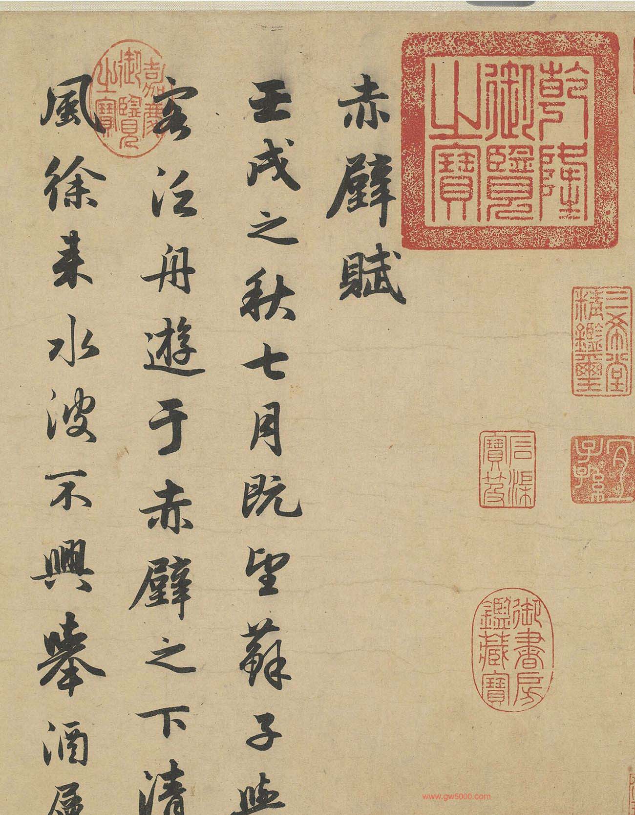元赵孟頫书前后赤壁赋卷,30.8x449.5厘米,台北故宫博物院藏。