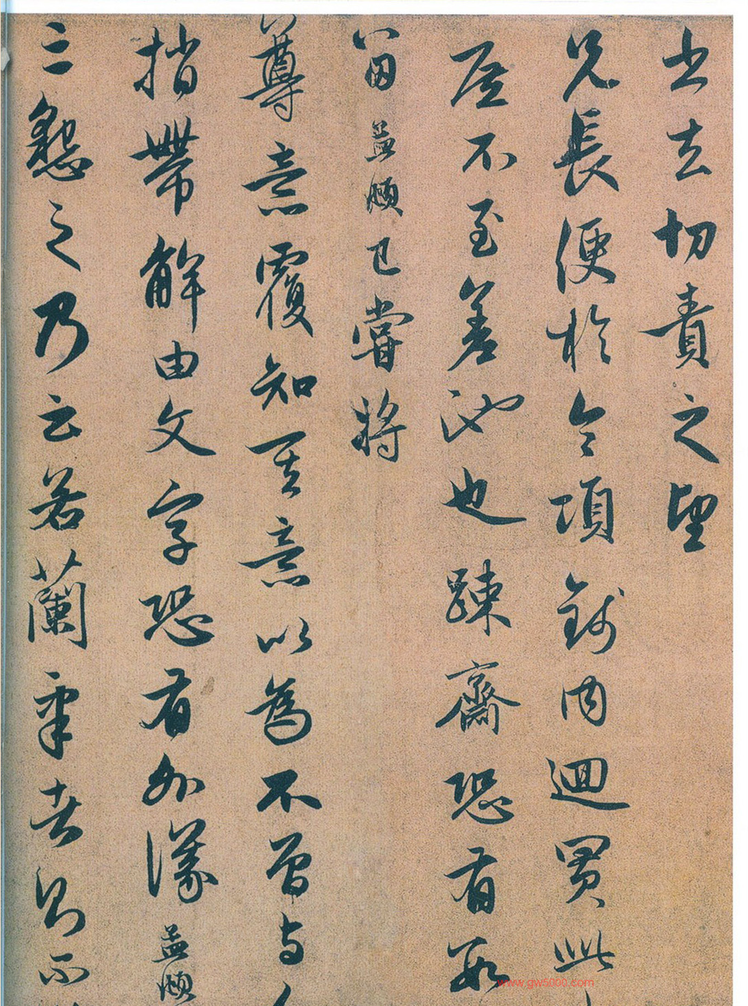 赵孟頫在整体艺术审美观上是以「崇古」为立场的,这种崇古思想,使他在书法上主张以晋人书风为尚,极力提倡回归晋唐书法。