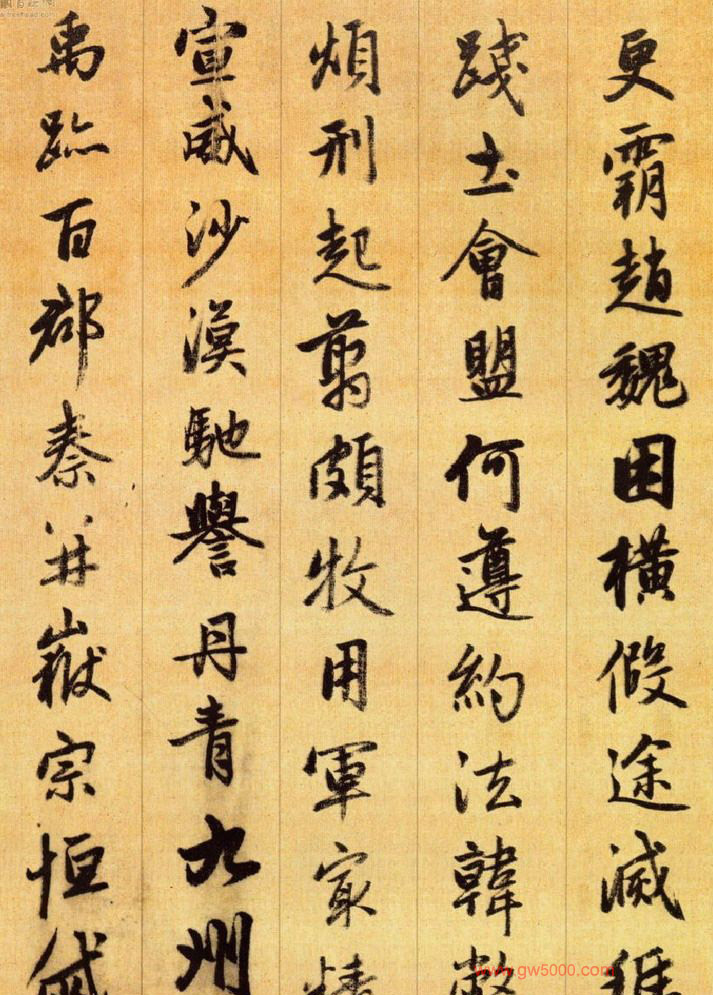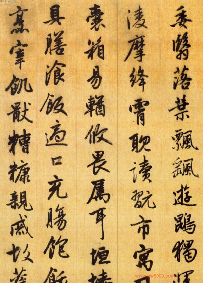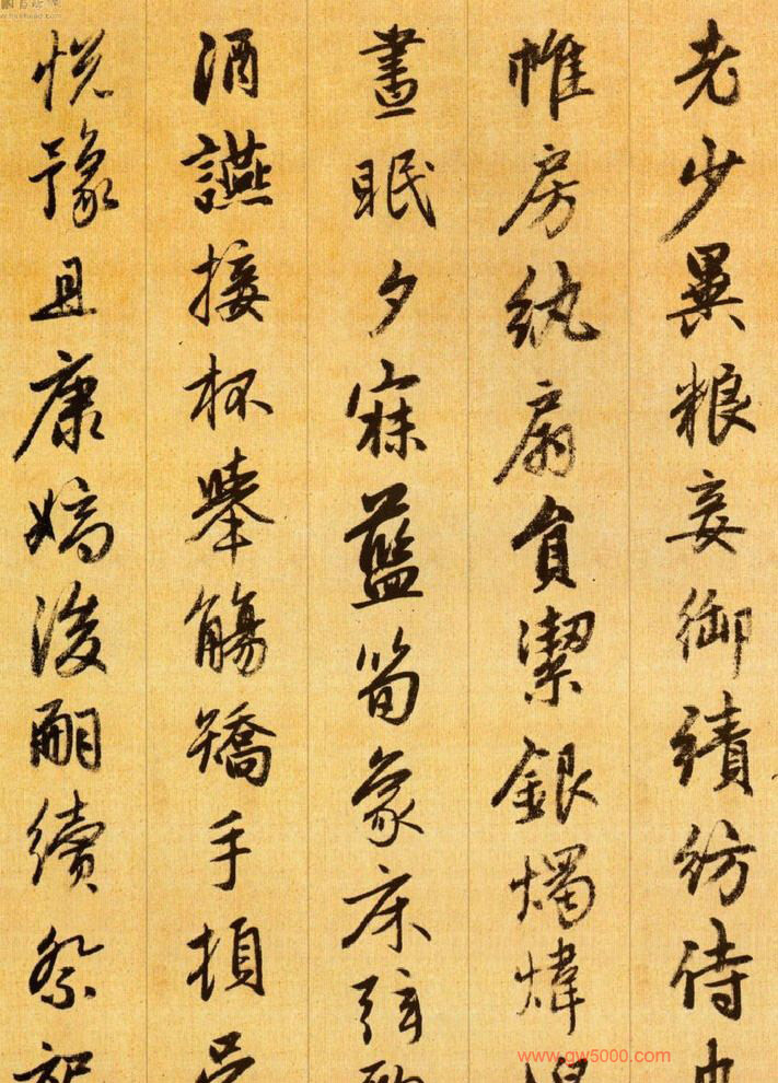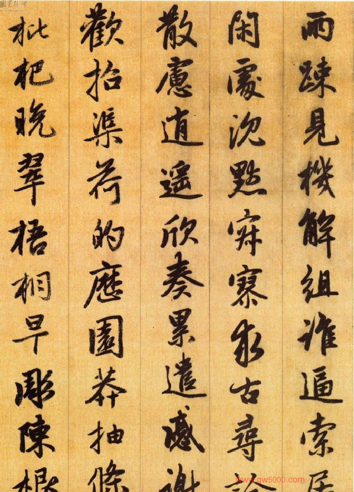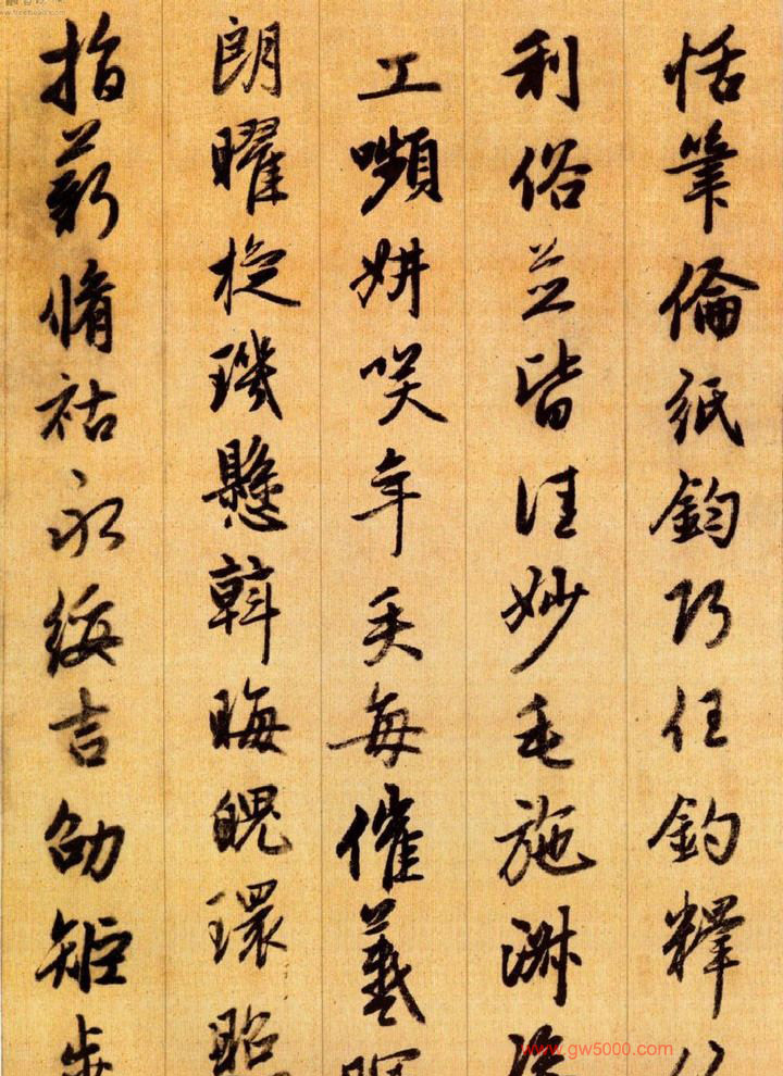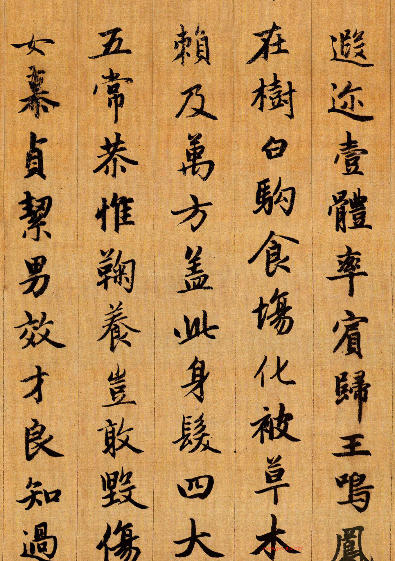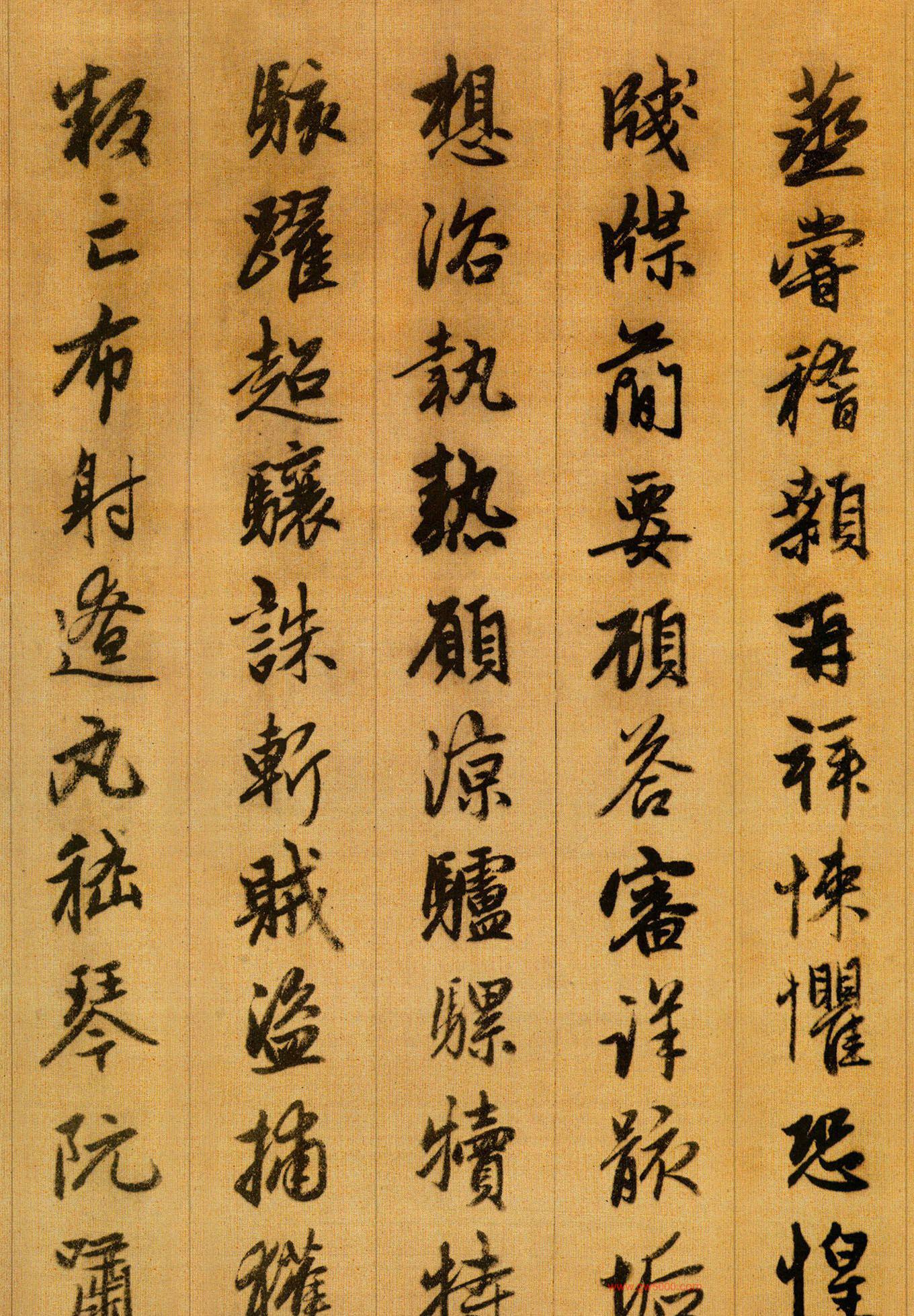 元代赵孟頫行书欣赏《千字文》卷,绢本,26.5x373.5厘米,故宫博物院藏。